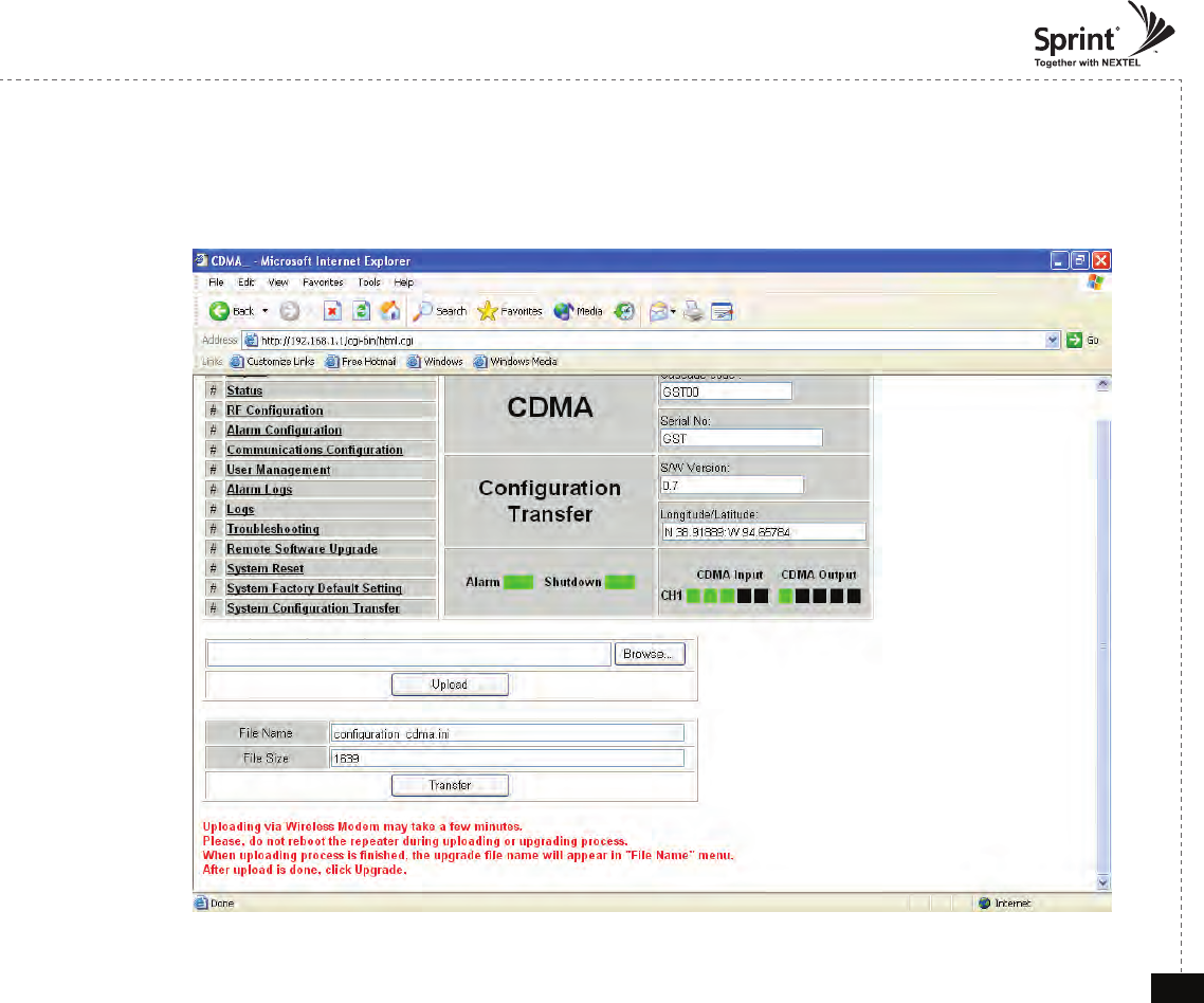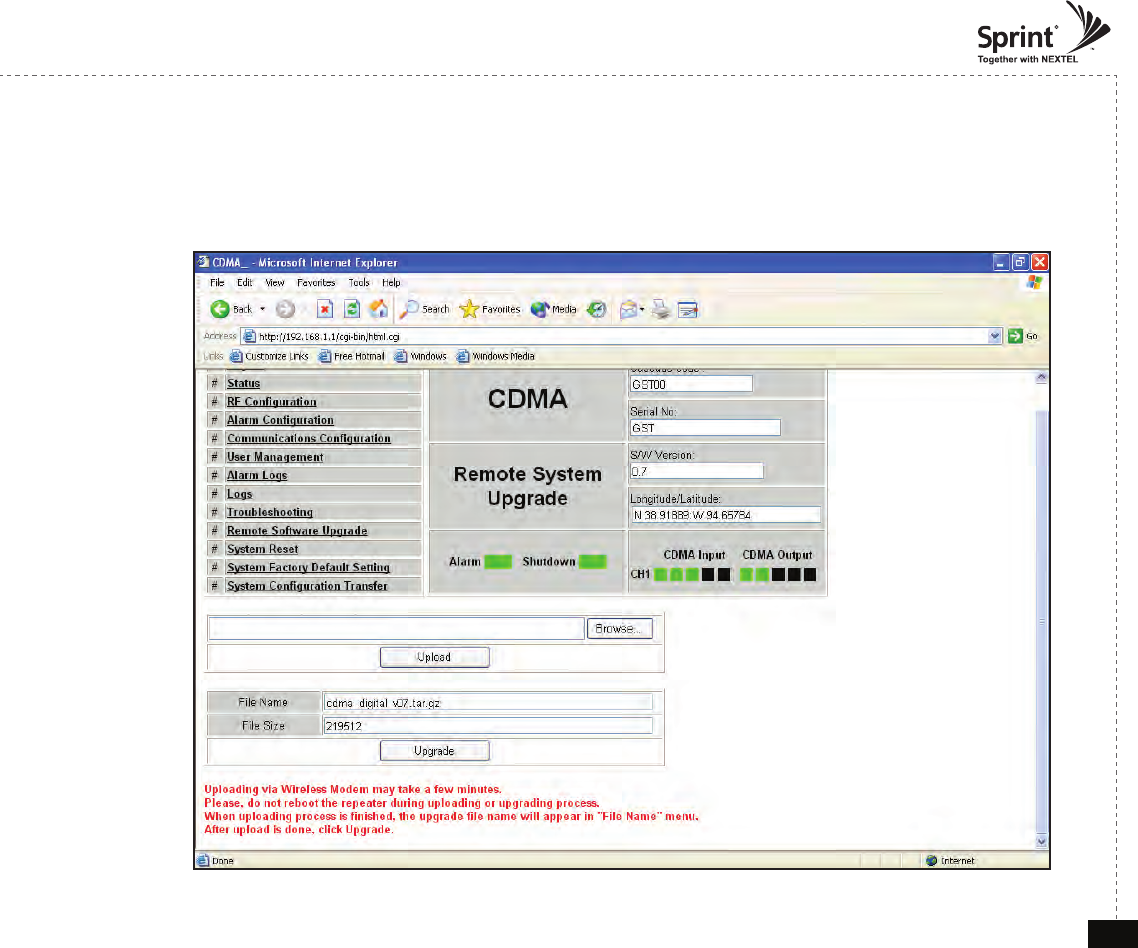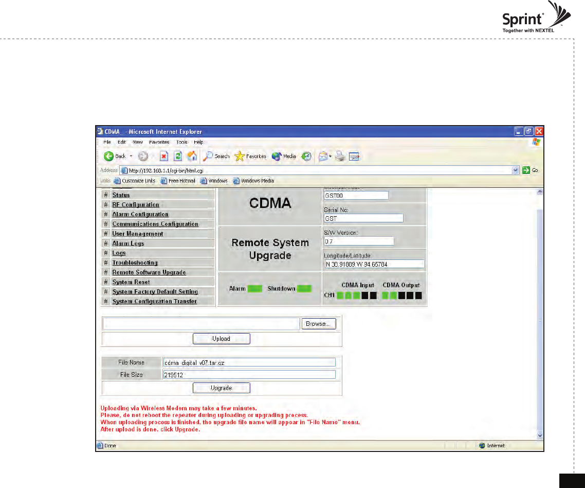 After you choose the le, you should click “upload” to send the le from your laptop to the repeater.