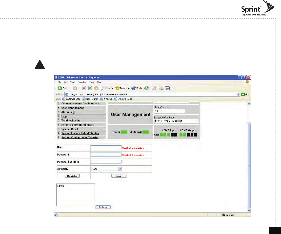 • On this page you can create and delete users, change passwords, and assign authorities to individual users.