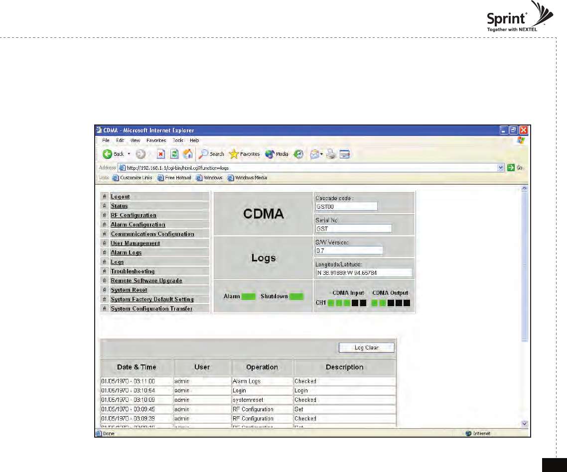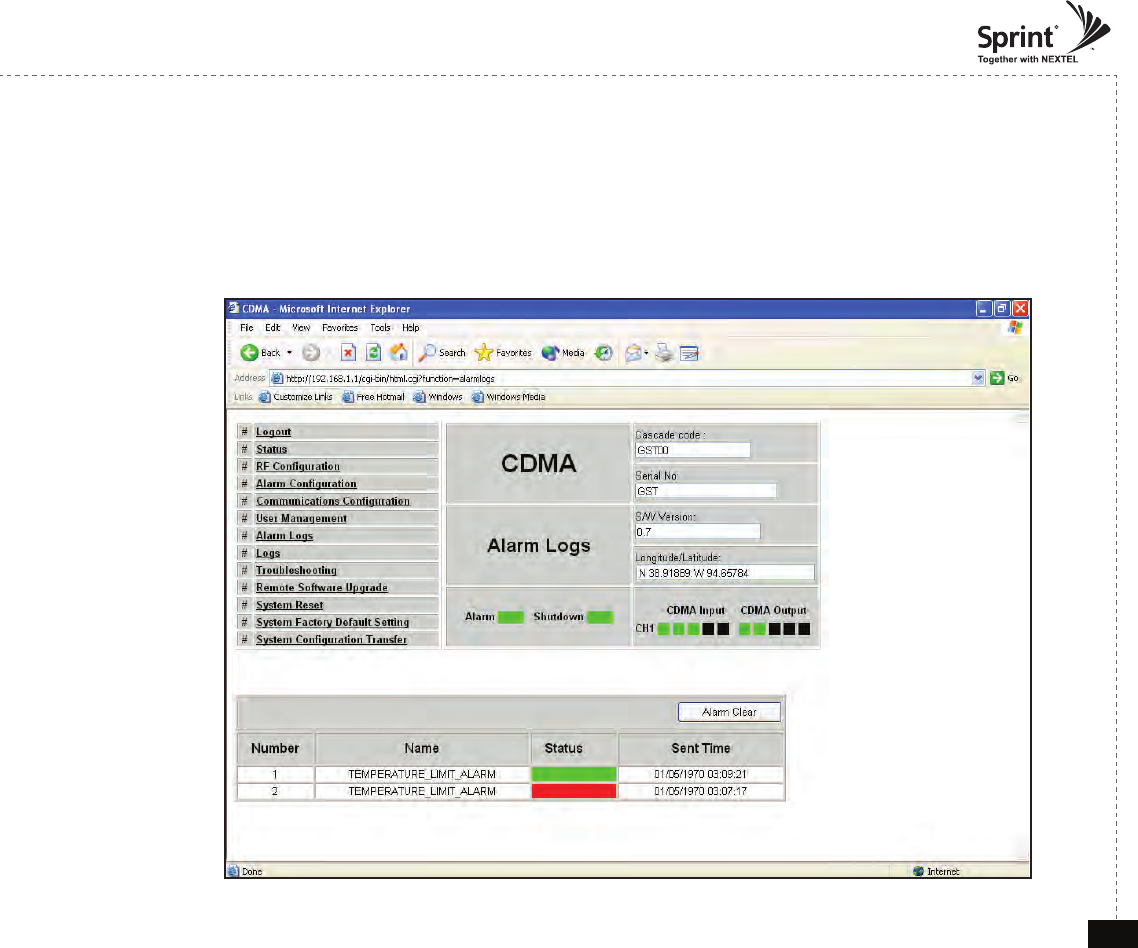 • You can see Alarm Logs regarding Web UI operation. Logs will maintain a history of up to 30 operations.