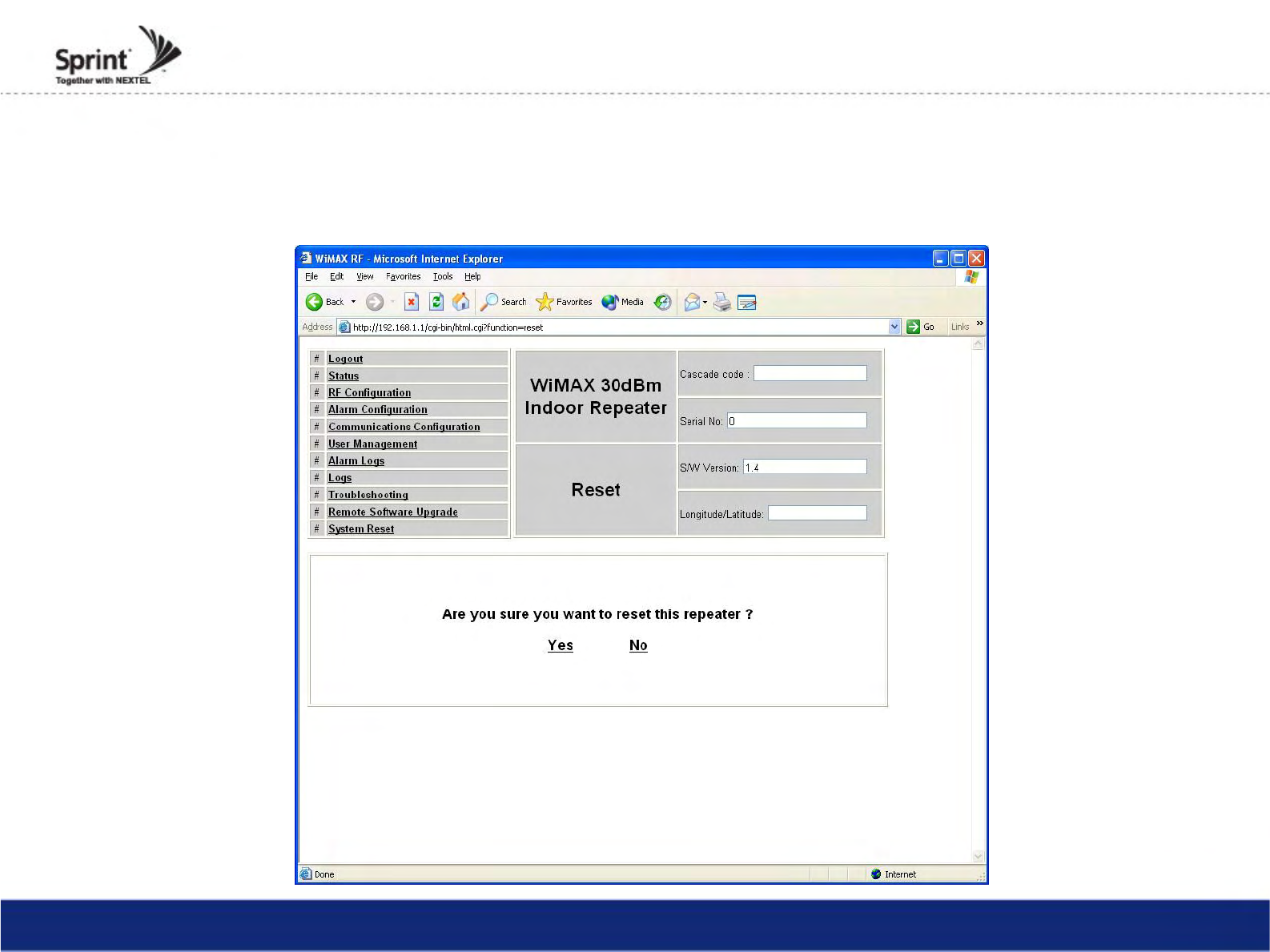 $VRIWZDUHUHVHWLVD³VRIWUHERRW´ RIWKHUHSHDWHU7RUHVHWWKHVRIWZDUHFOLFNRQµ6RIWZDUH5HVHW¶ DQGWKHQ