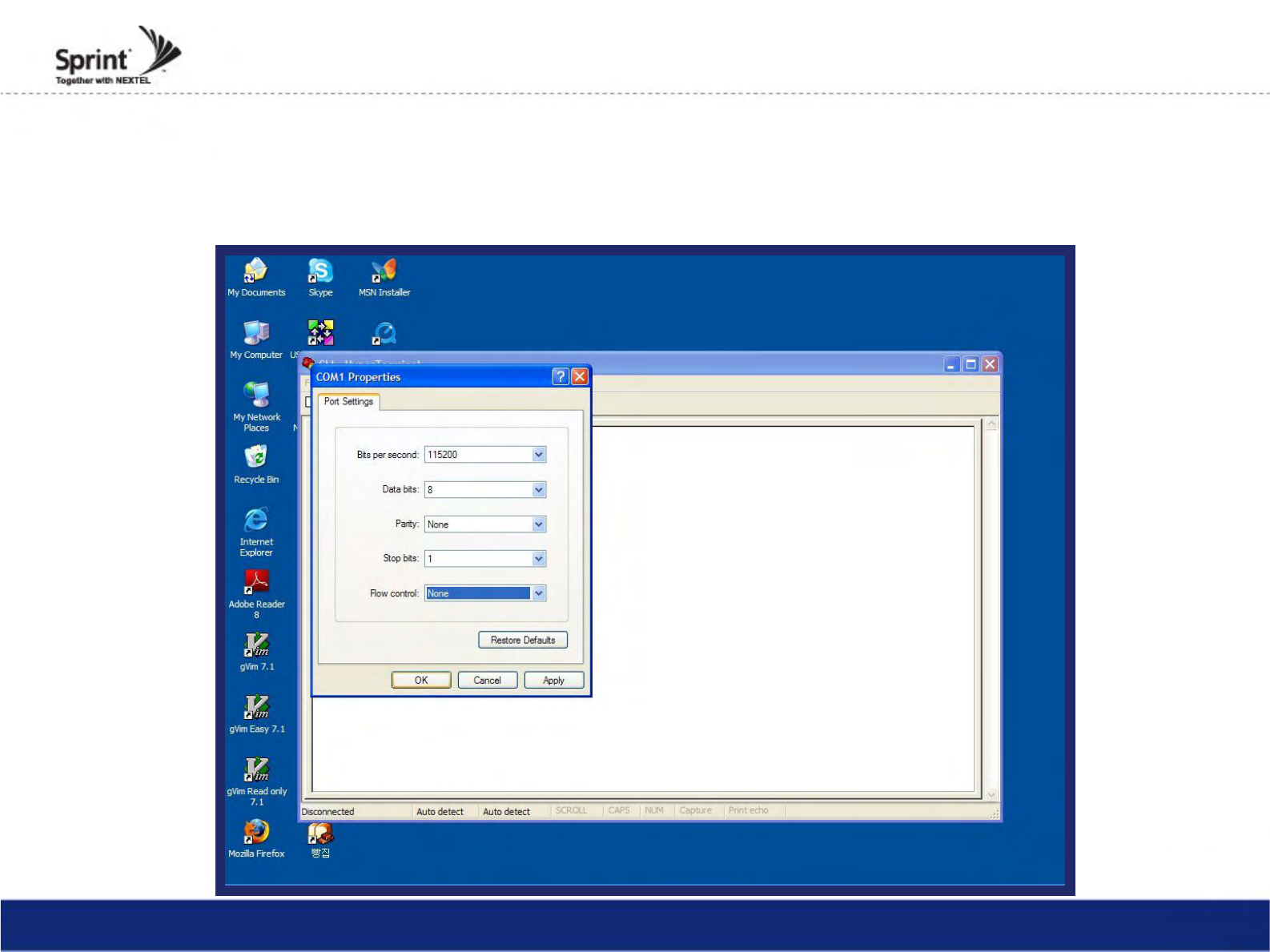 6HWWLQJV´ WDEFOLFN³$GYDQFHG´LQWKH&203RUWGURSGRZQPHQXVHOHFW³&20´FOLFN³2.´