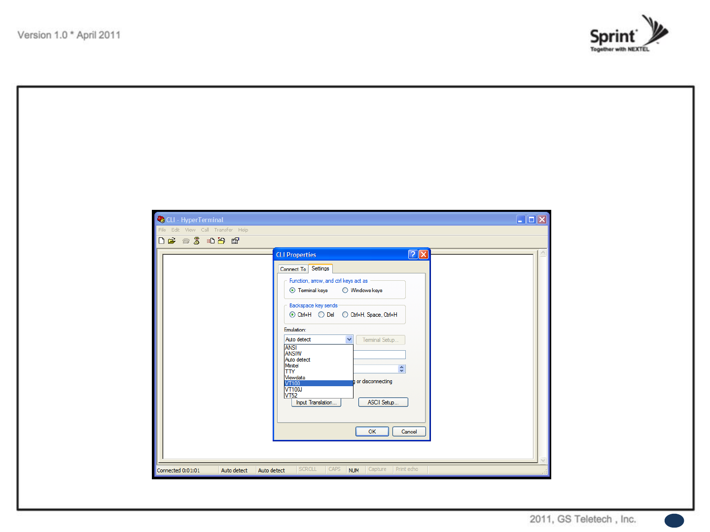 • „Emulation‟ drop down menu, select „VT100‟.
