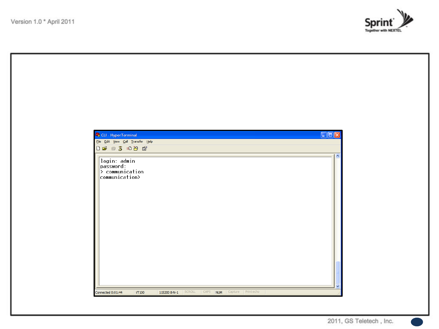 After connection, you can access CLI using HyperTerminal.
