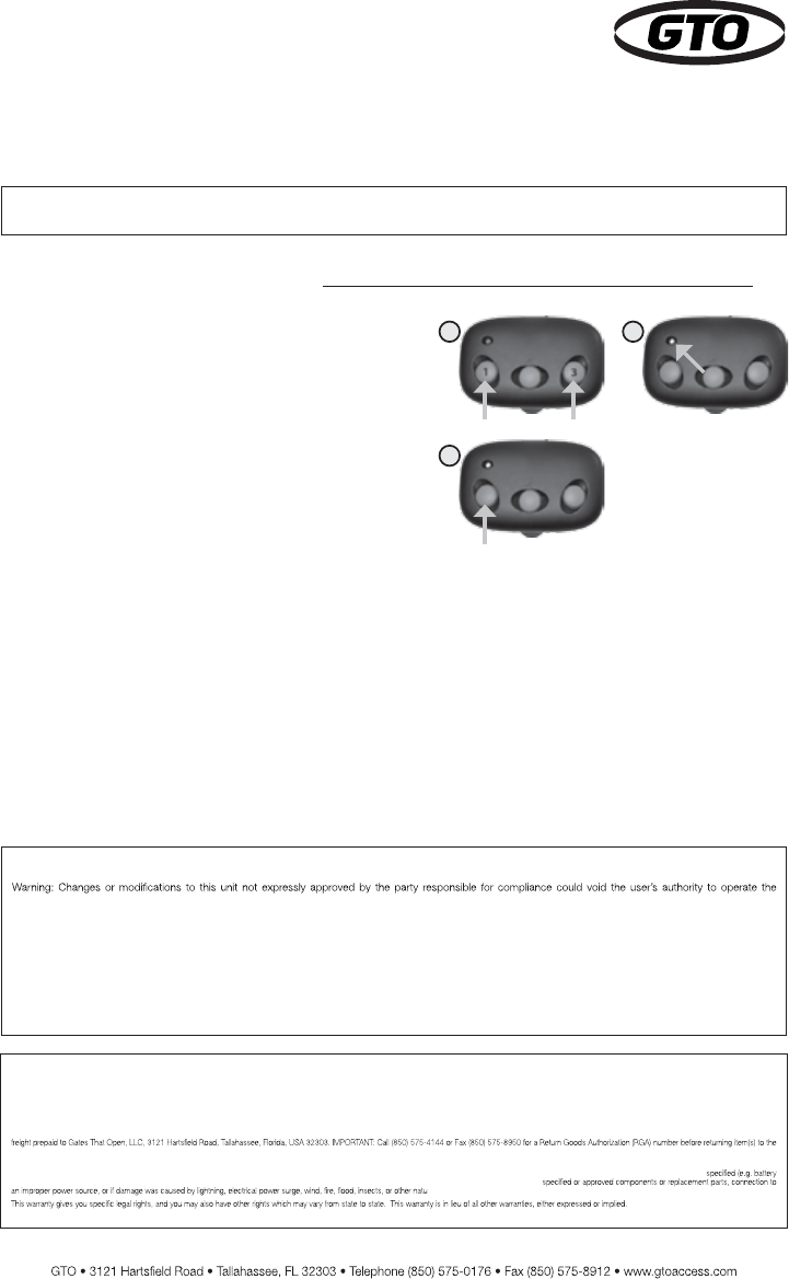 GTO Access Systems, LLC Three Button Entry Transmitter CS3BT Instructions