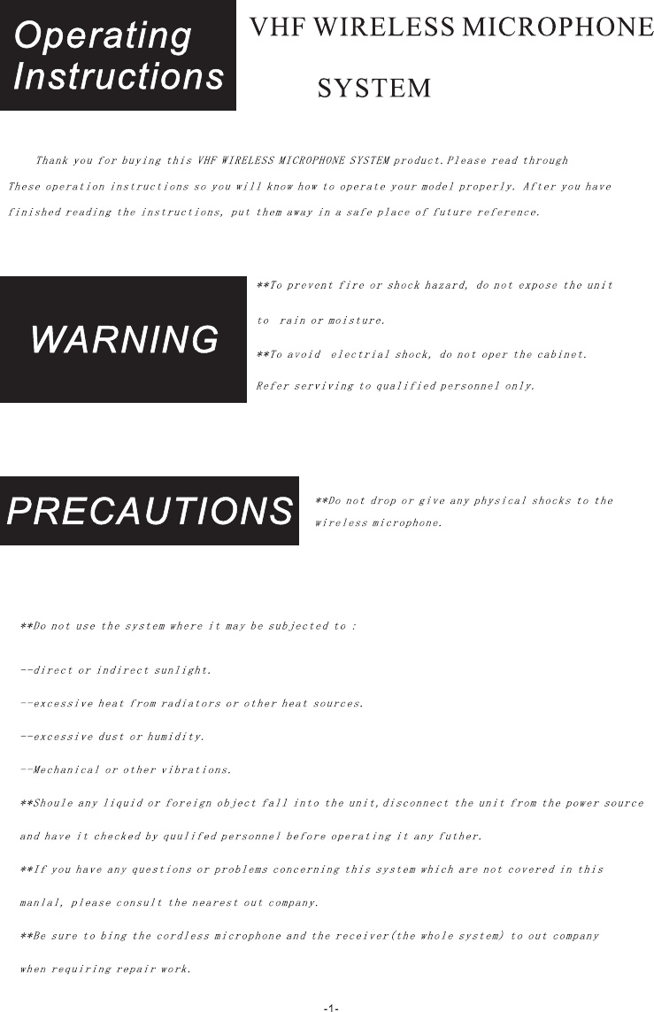 GUANGZHOU ADS AUDIO SCIENCE and TECHNOLOGY MIC-0001 WIRELESS MICROPHONE User Manual 1
