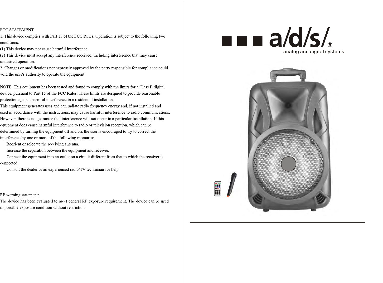 GUANGZHOU ADS AUDIO SCIENCE and TECHNOLOGY TROLLEY-0001 TROLLEY SPEAKER User Manual