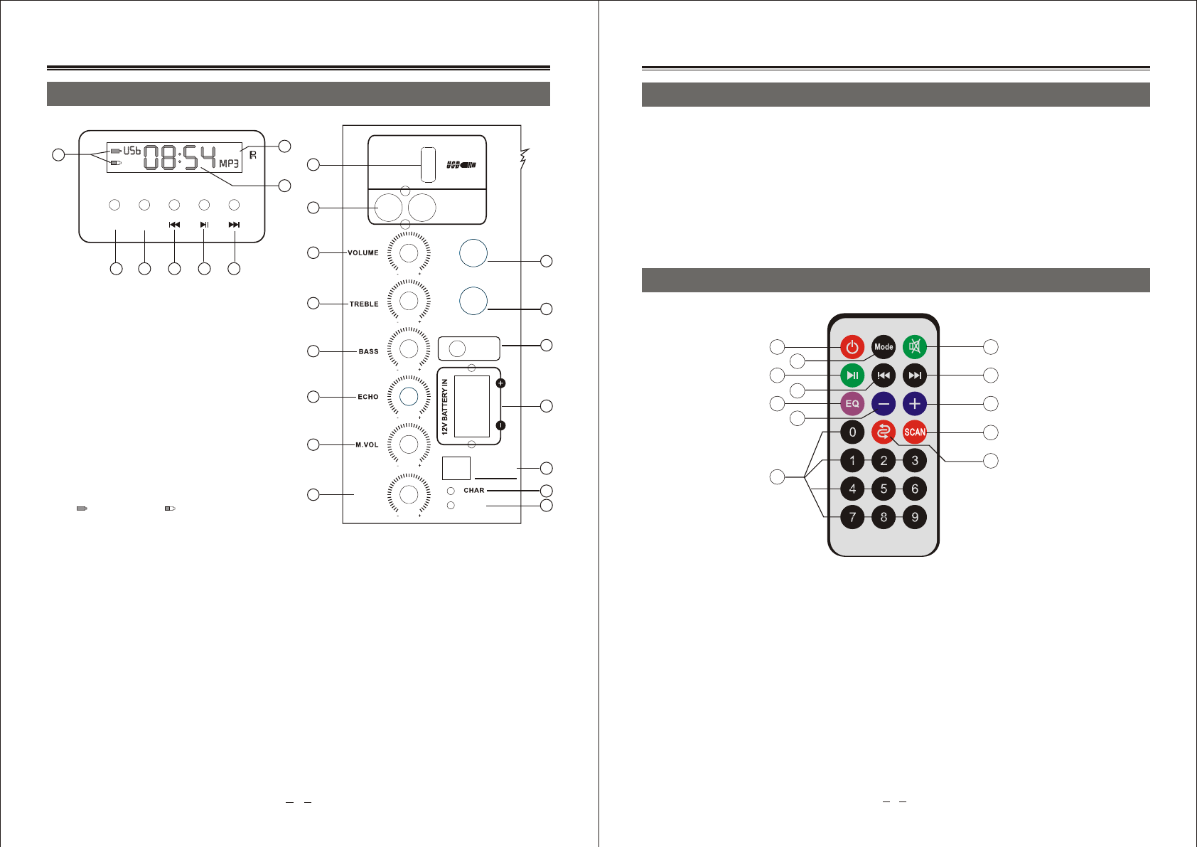 14. Echo knob, to adjust the echo.
