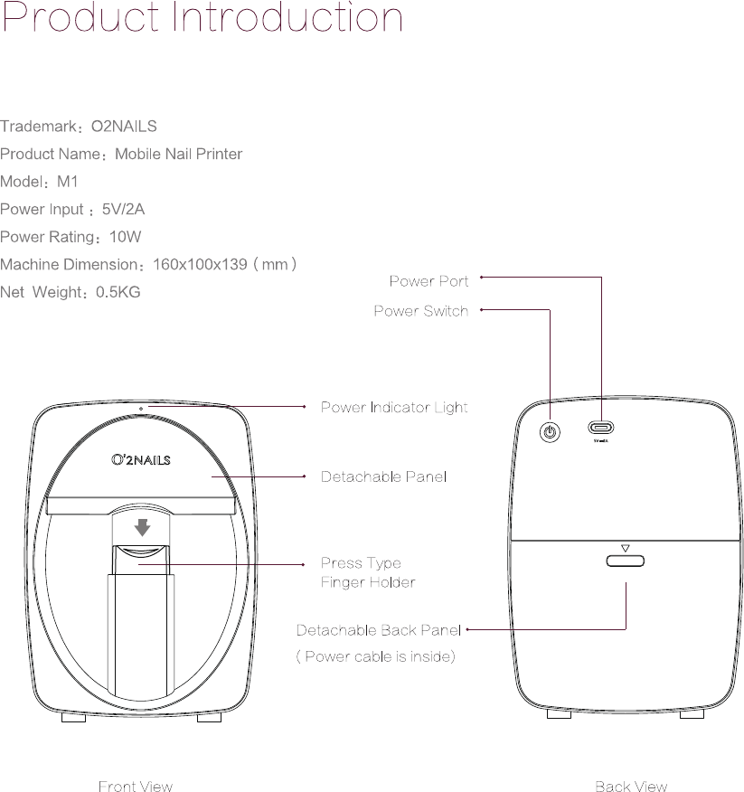 GUANGZHOU TAIJI ELECTRONIC O2NAILS-M1 Mobile Nail Printer User Manual