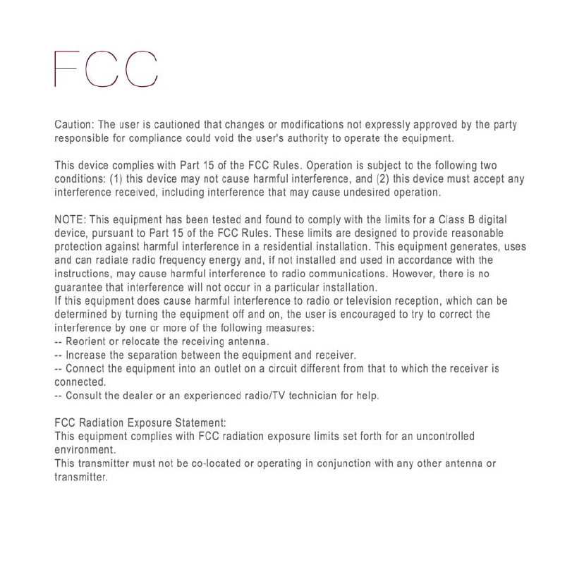 This equipment should be installed and operated with a minimum distance of 20cm between the radiator and your body.