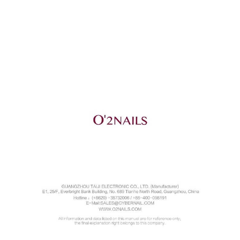 GUANGZHOU TAIJI ELECTRONIC O2NAILS-V11 Mobile Nail Printer User Manual