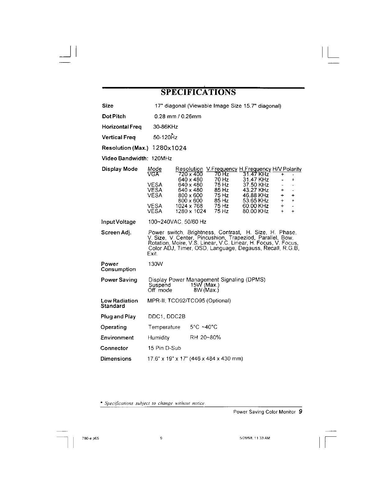 GVC 780 17 " Color Monitor with 1280X1024 NI Display User Manual 68942