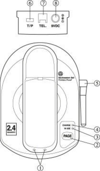 6. IN USE/LOW BATT LED : Lighting of green LED to indicate line is in use or