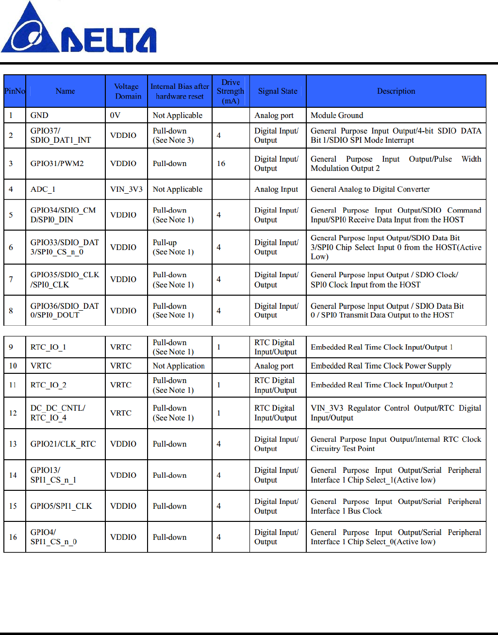 Module Pins Description