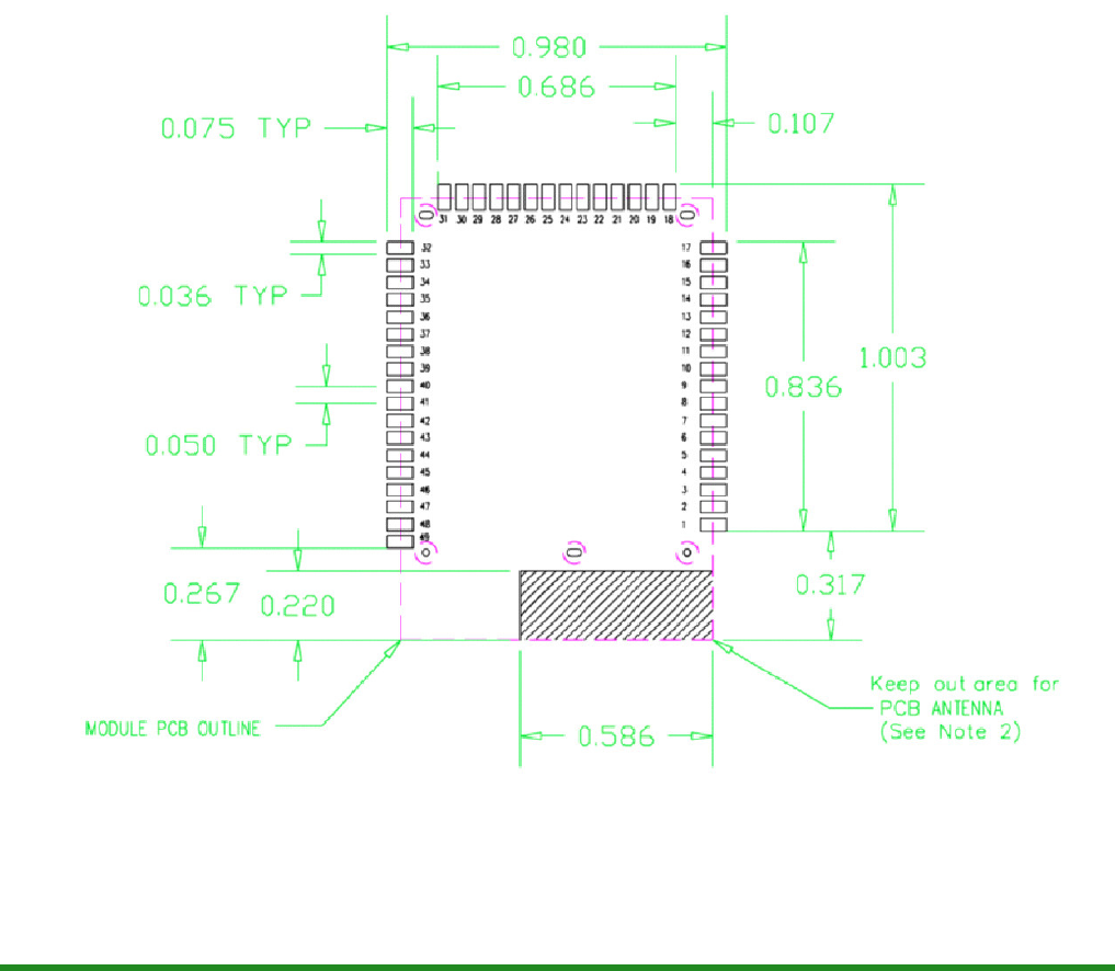 Figure 8 GS2011MIx Module Recommended PCB Footprint (in inches)
