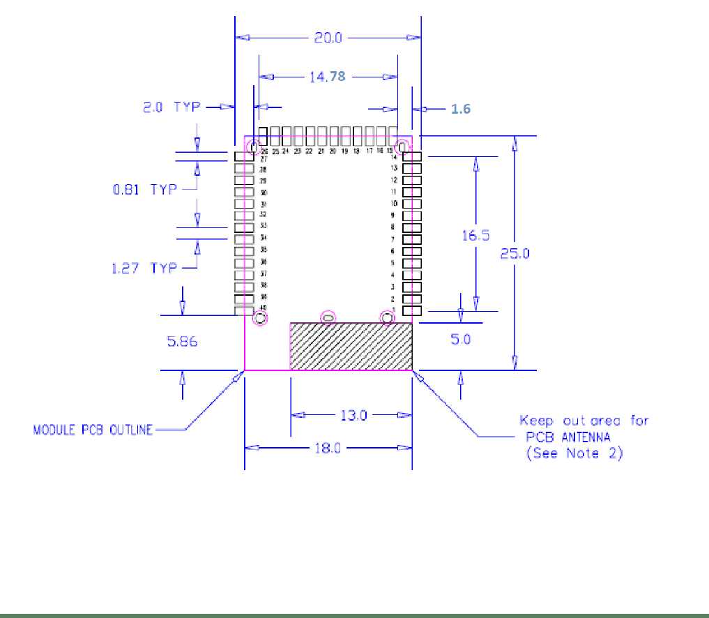 GS2100Mxx Recommended PCB Footprint and Dimensions