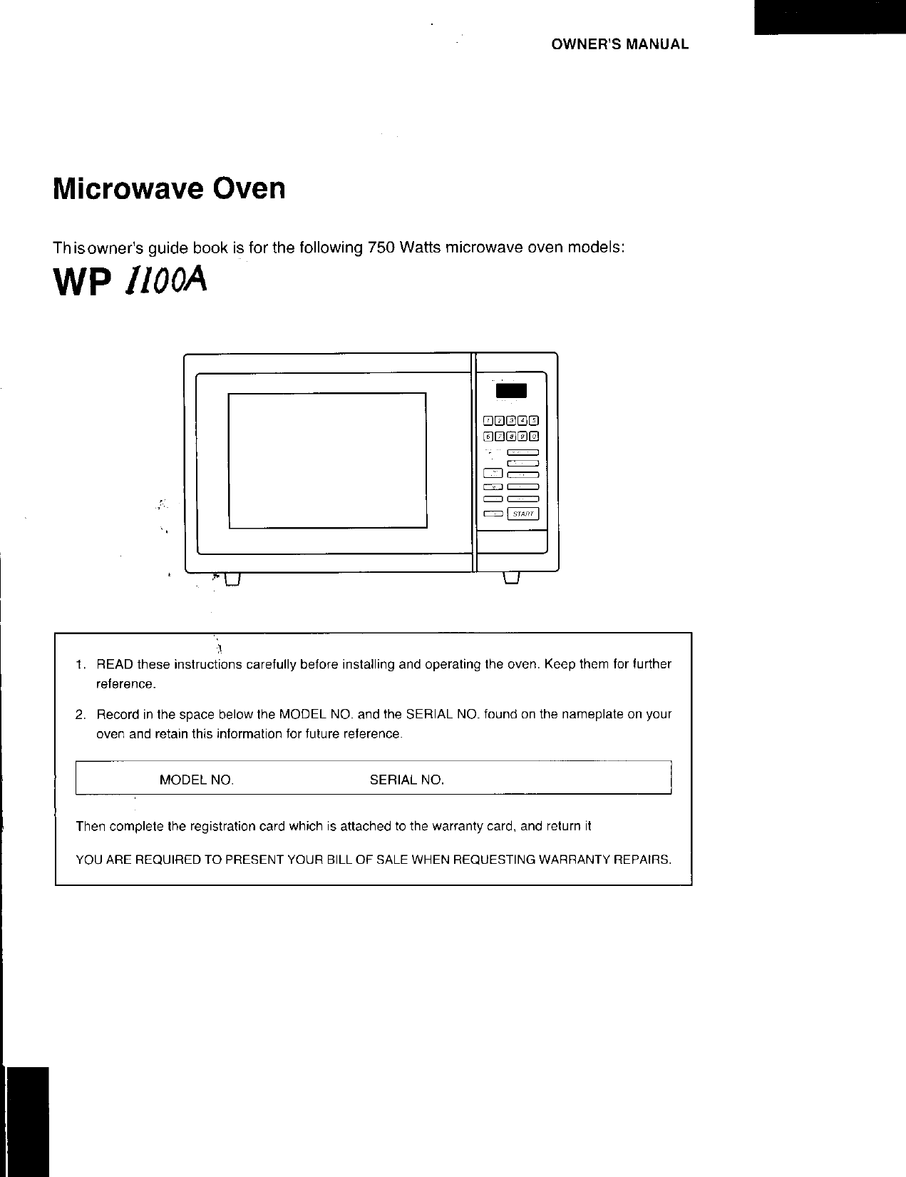 Galanz Enterprise 98031100N Microwave Oven User Manual 76417