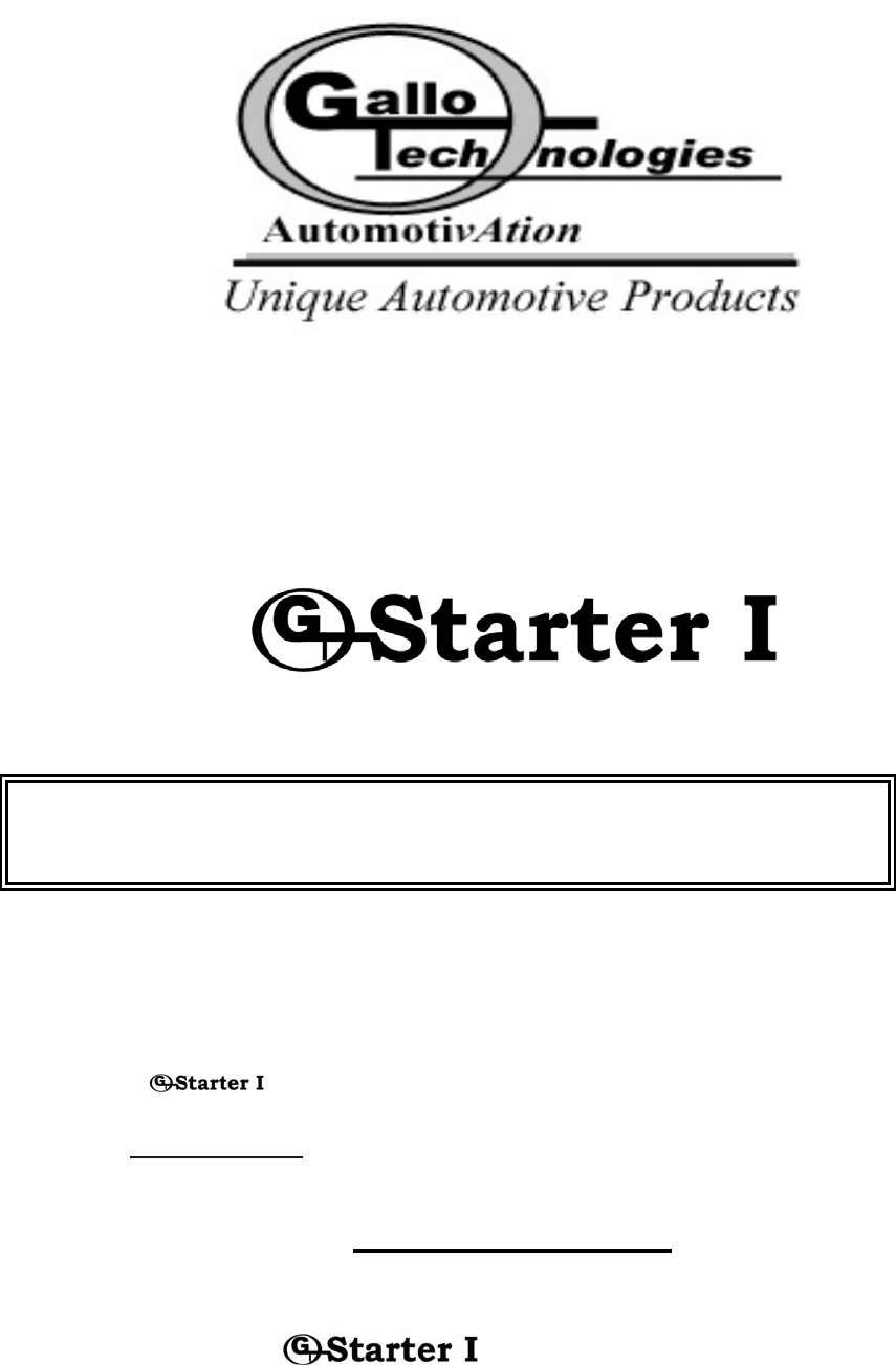 Gallo Technologies GTStarter I GTStarterI manualfinal060308
