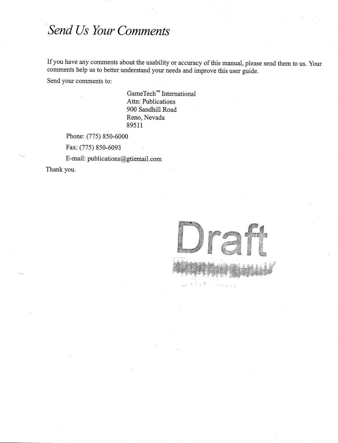 GameTech 99-00002-0000 900 MHz transmitter User Manual The Title