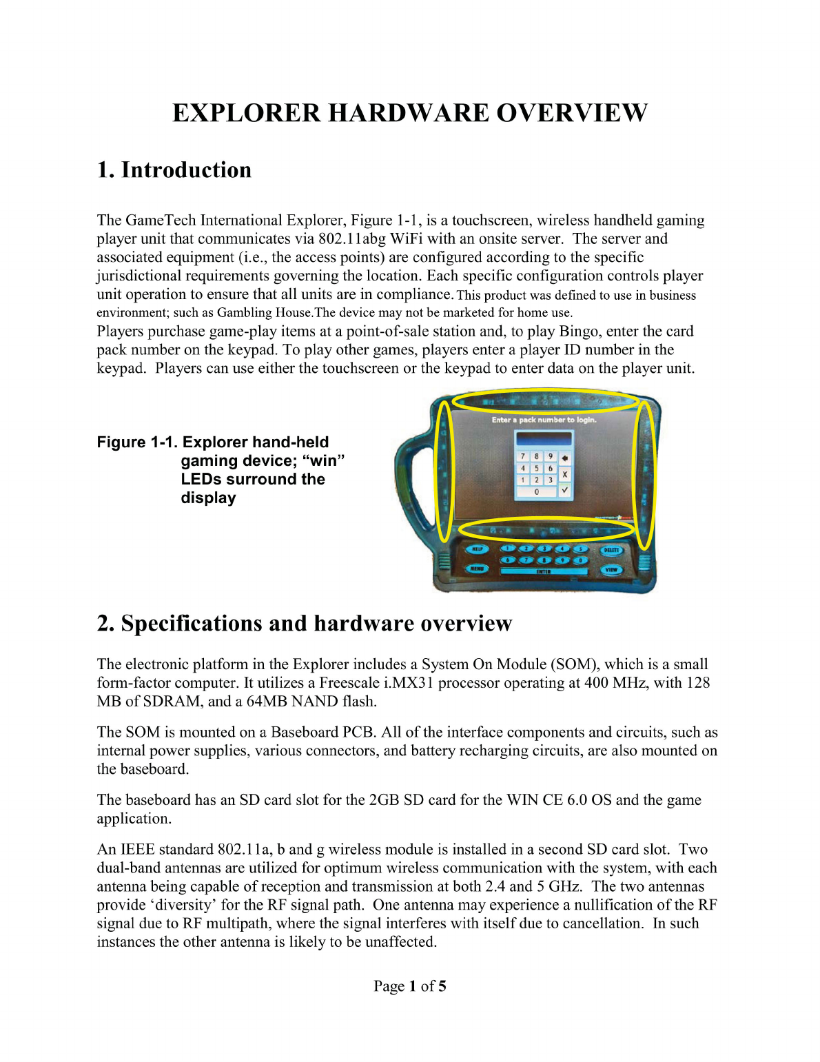 GameTech International, Inc. Wireless handheld gaming device - Explorer Player Unit