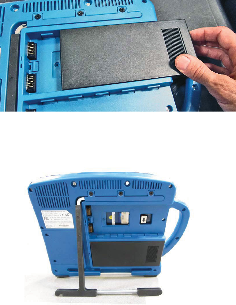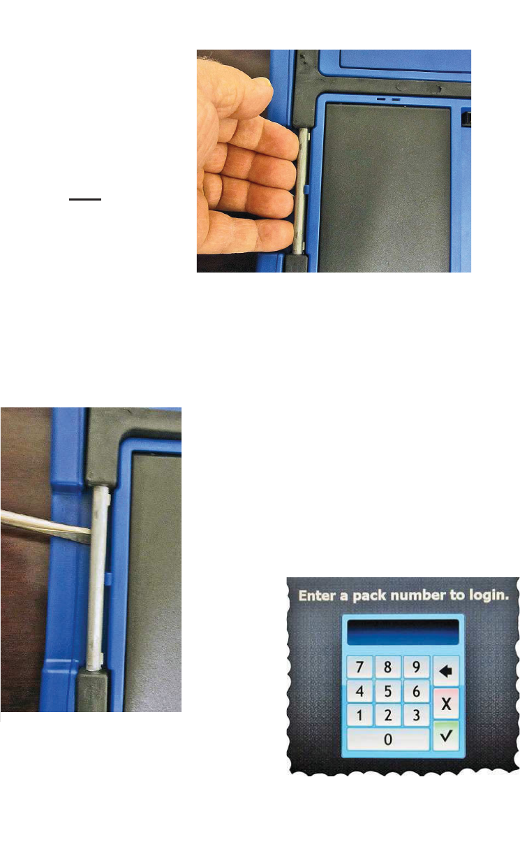 the tool to free the latch from the Figure 1-4. Inserting the battery release tool