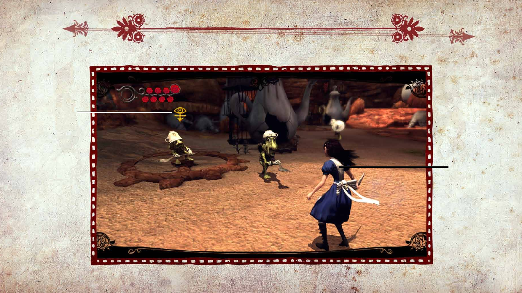 A lo largo del viaje de Alice deberás recoger dos armas para el combate cuerpo a cuerpo,