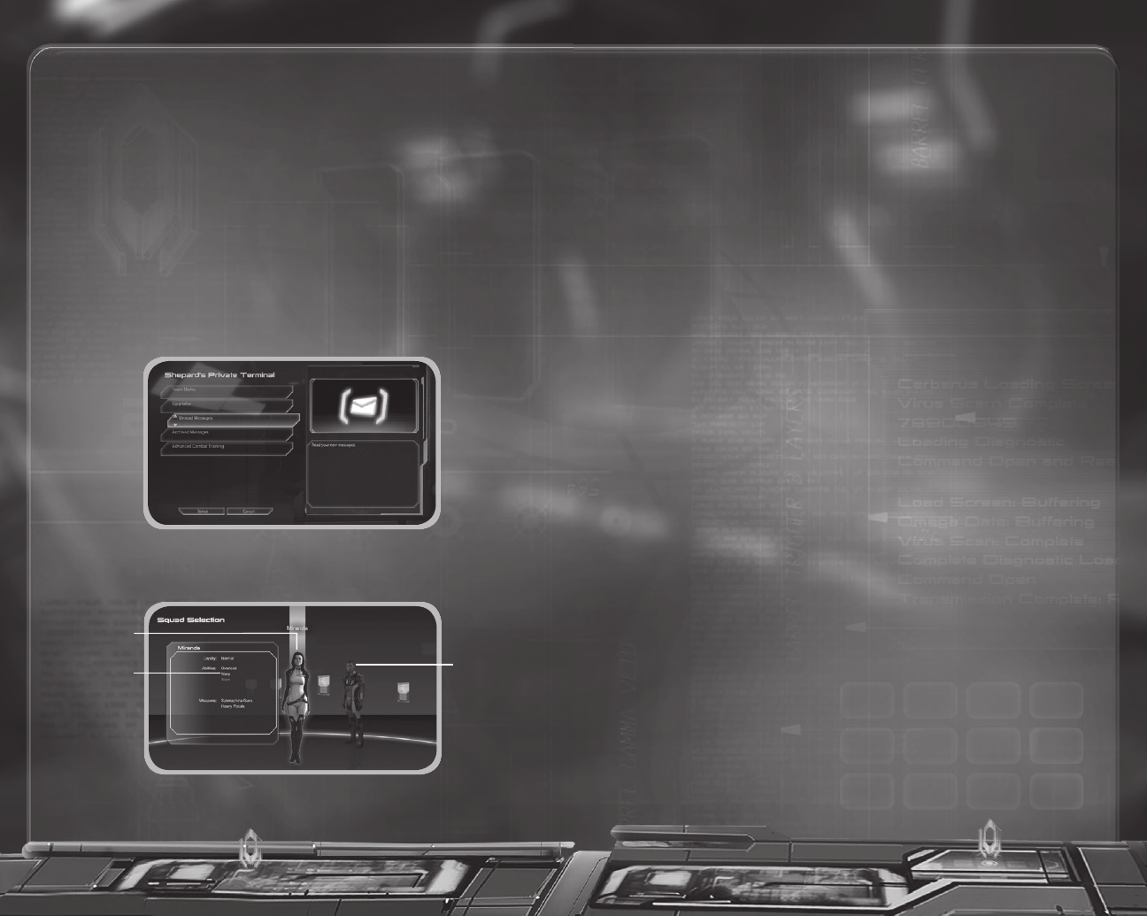 Squad View the current status of Shepard and squad. You can also spend squad points here