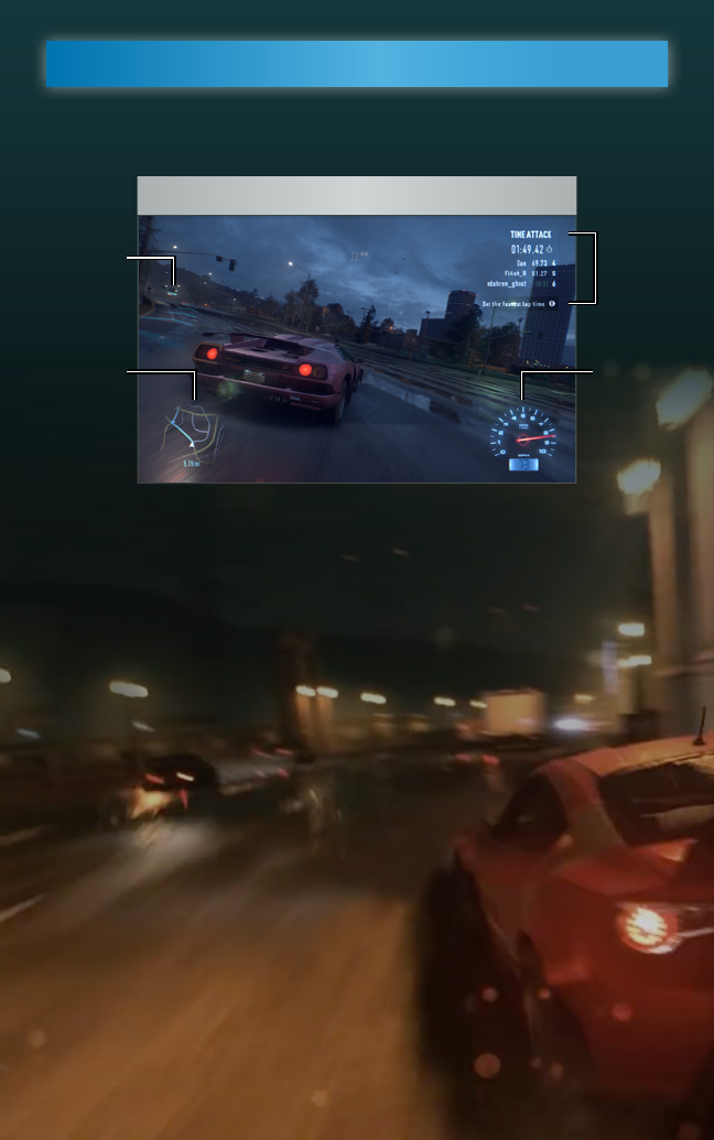 rivales, las rutas actuales, los polis que te persiguen e incluso eventos ocultos, como puntos