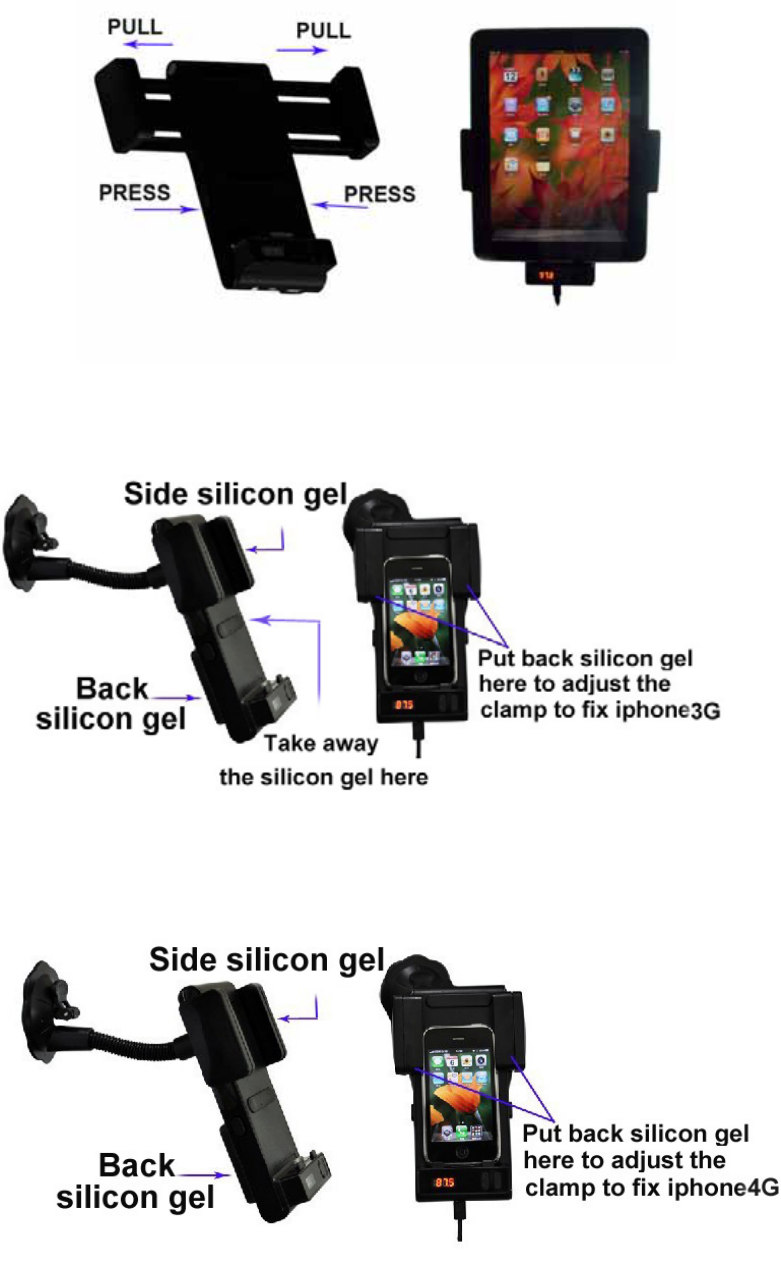 3. Place your iPod/iPhone/iPad into the holder; adjust the flexible clamp by