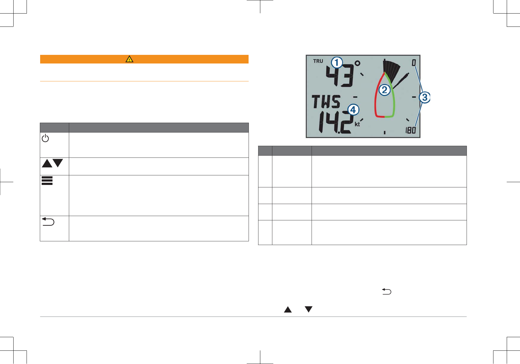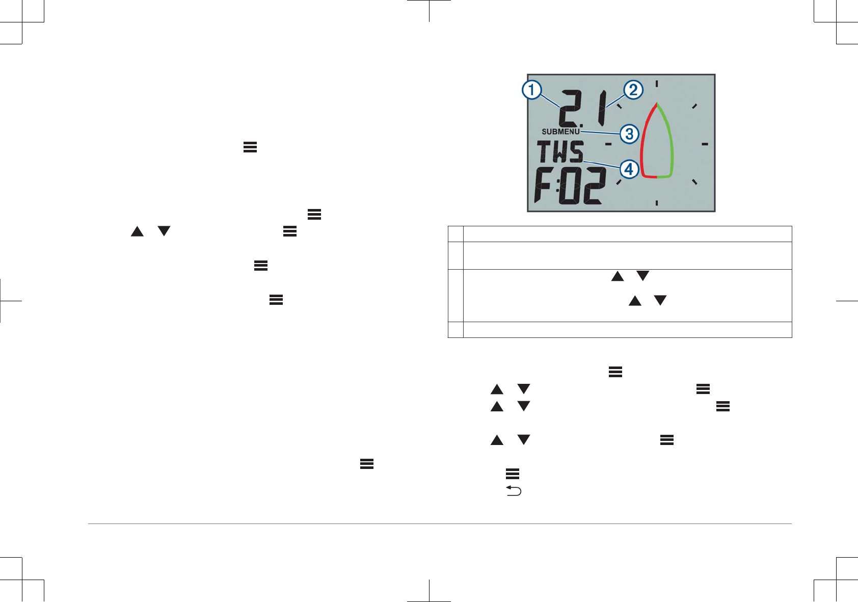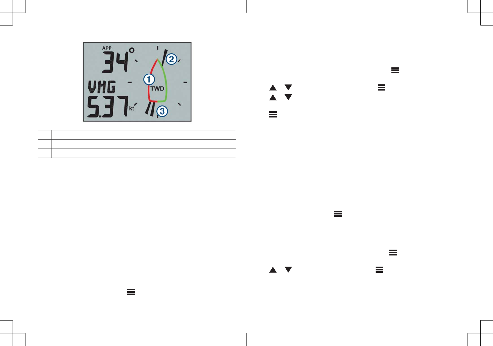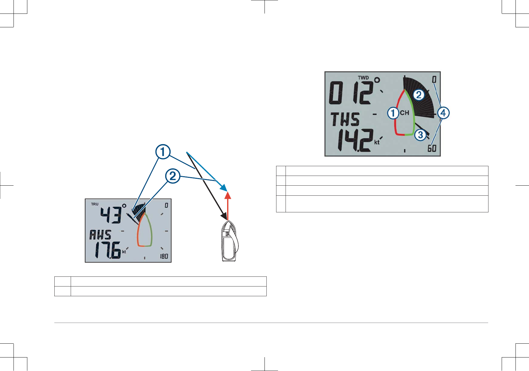 ➁Wind rose Shows wind direction or angle information on the boat diagram.