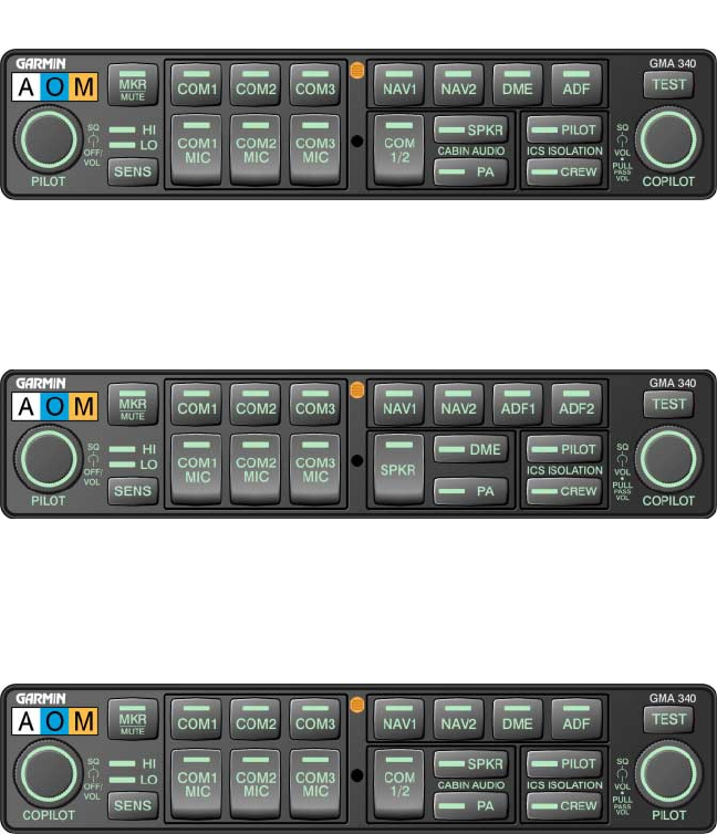 Additionally, each audio source can be selected independently by pressing COM 1, COM 2, or COM 3
