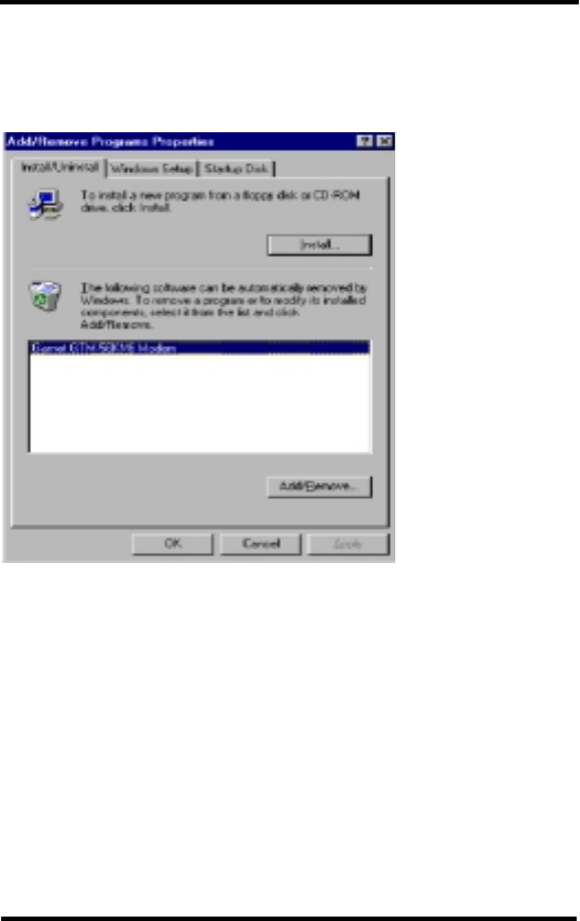 2. Select <Garnet GTM-56KM6 Modem> and click <Add/Remove>