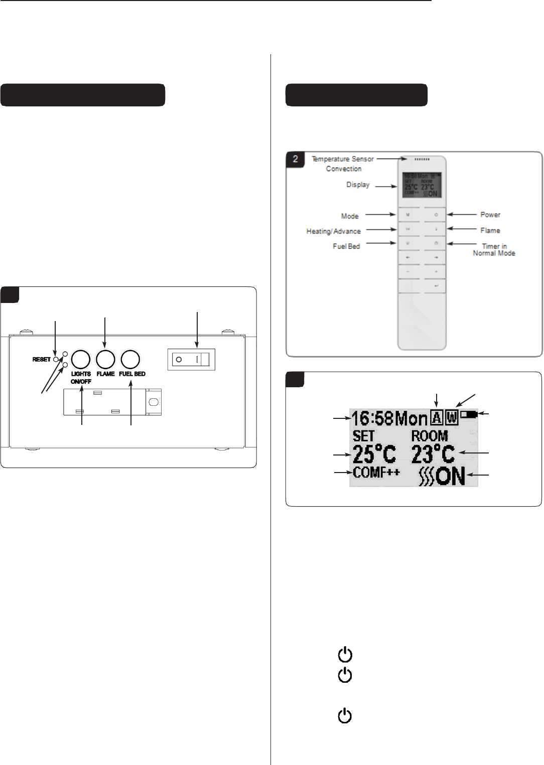 2a.5 Press “FUEL BED” button to select the colour of fuel bed