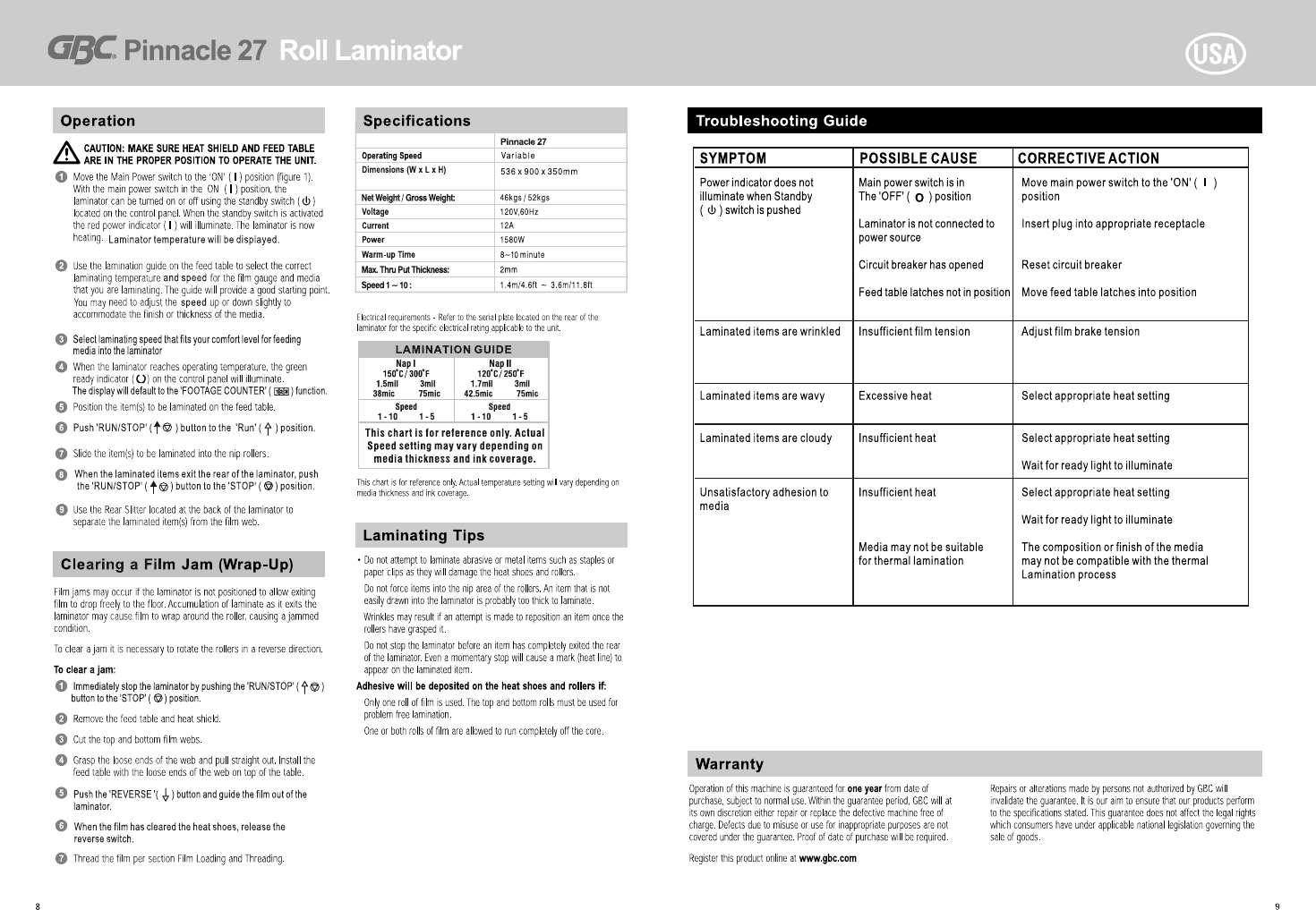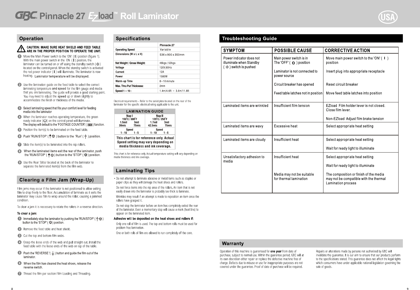 : Gbc Gbc-Ezload-Pinnacle-27-Instruction-Manual-165999 gbc-ezload-pinnacle-27-instruction-manual-165999 gbc pdf