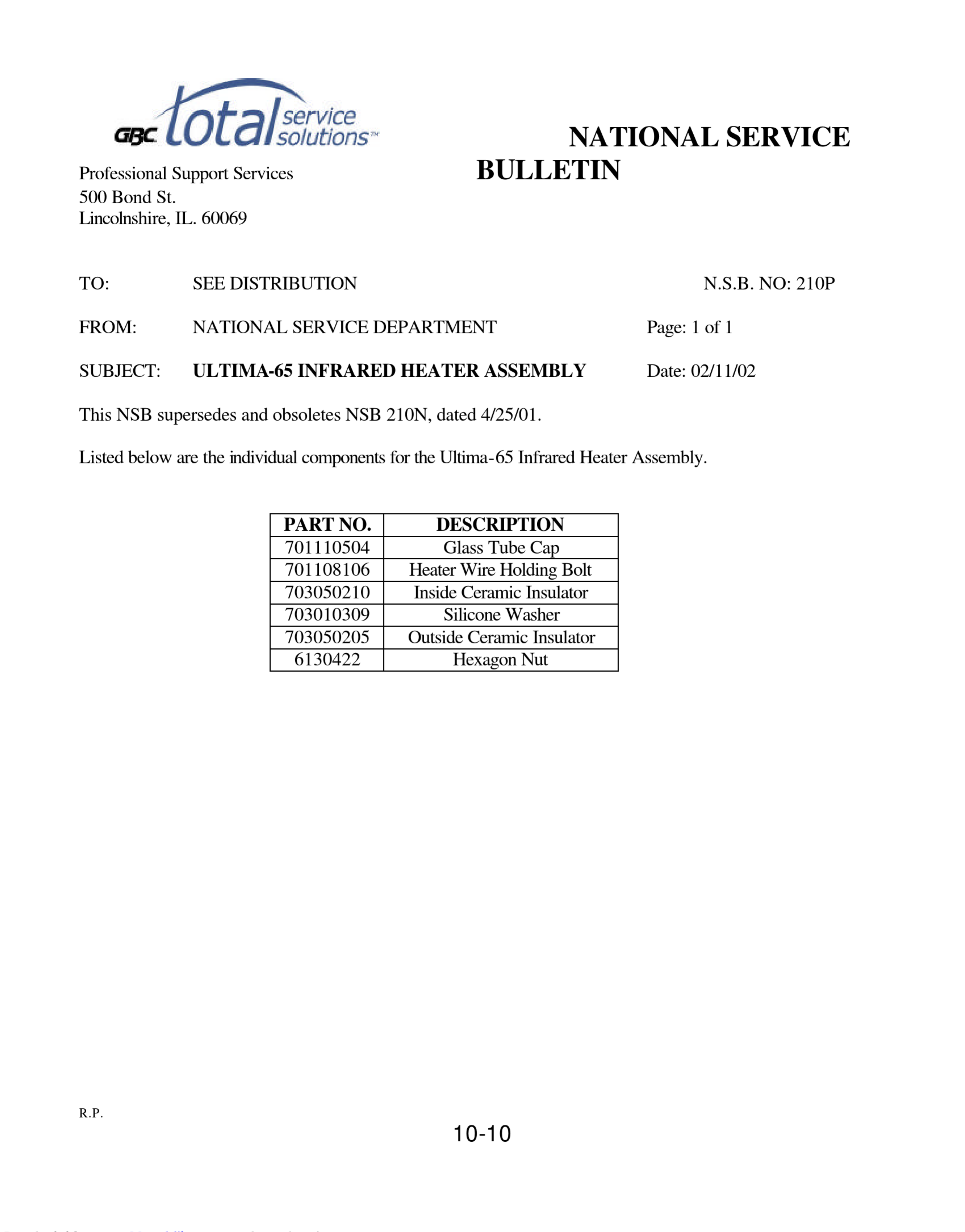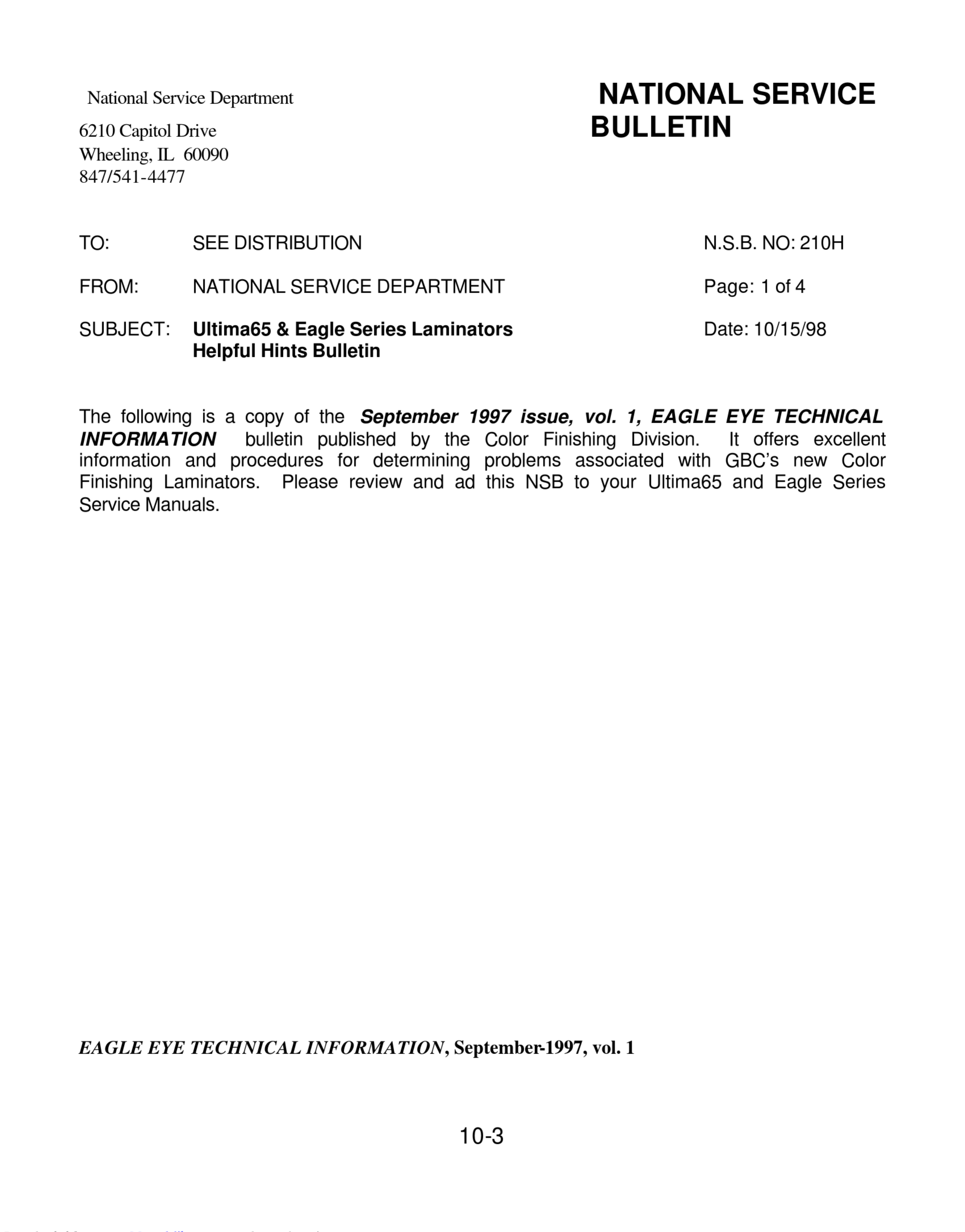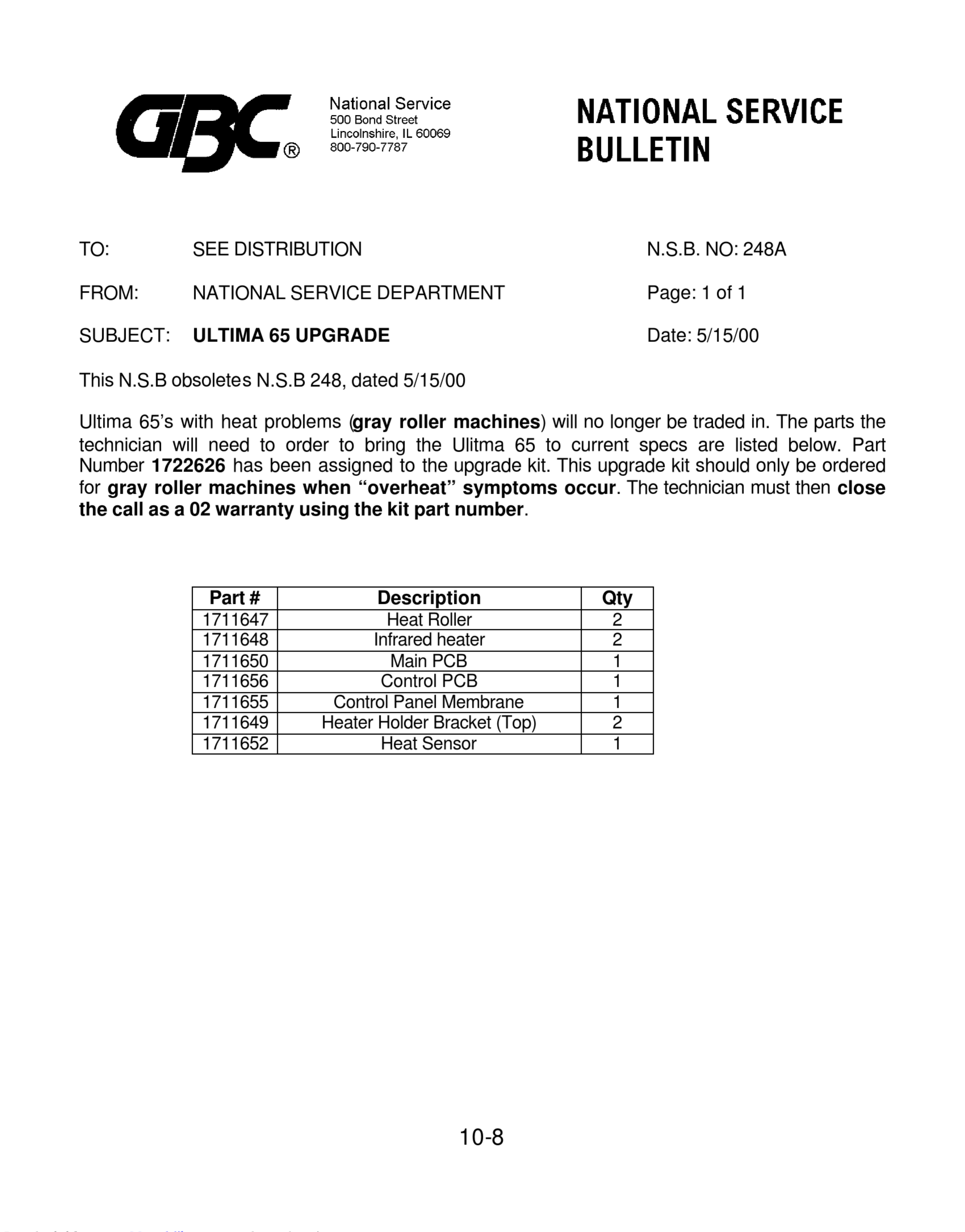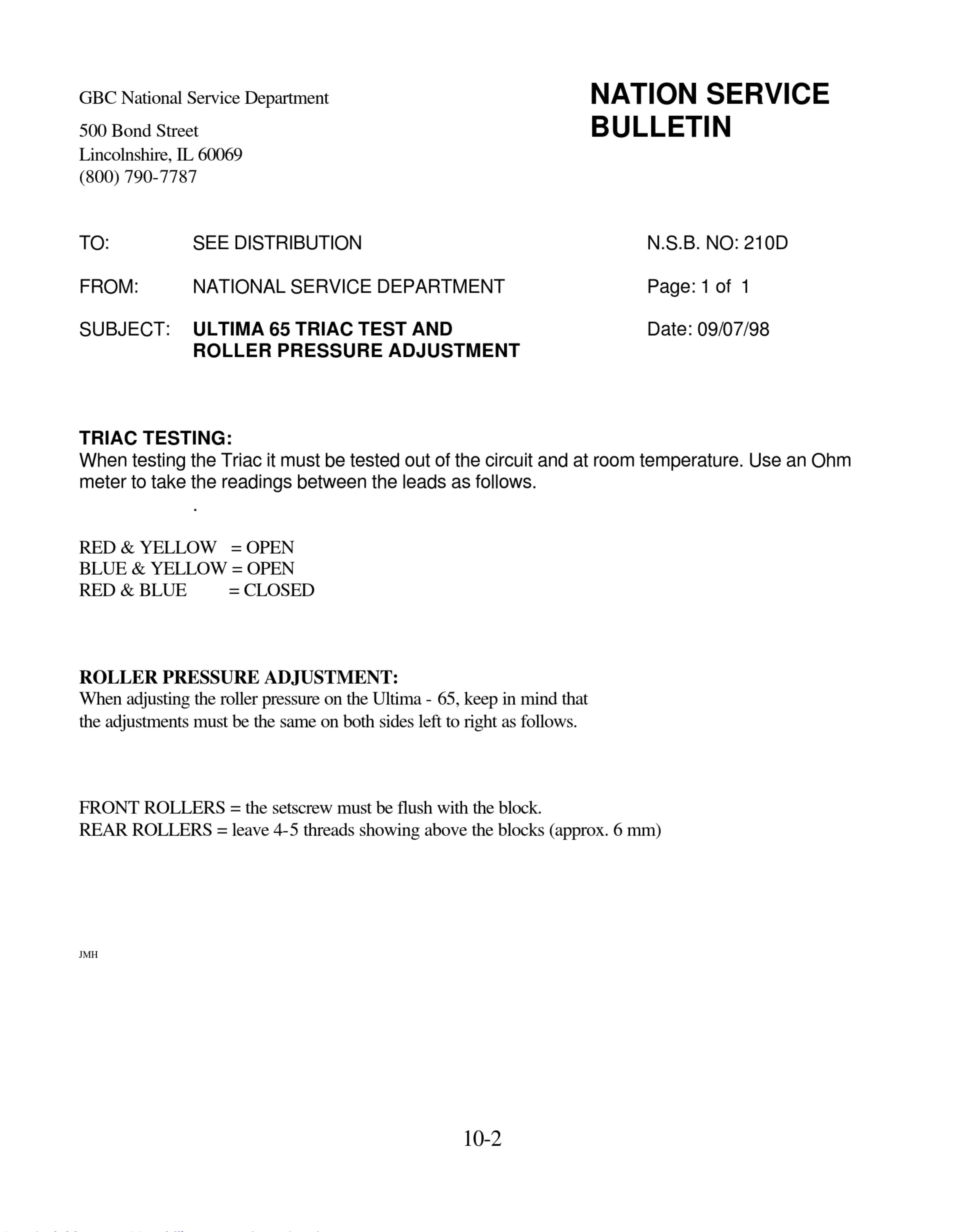 User Manual: Gbc Gbc-Ultima-65-Service-Manual-1002845