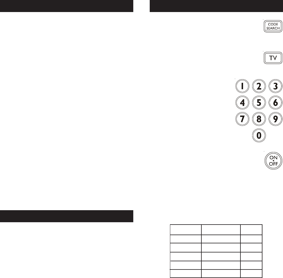 codes under the TV button.