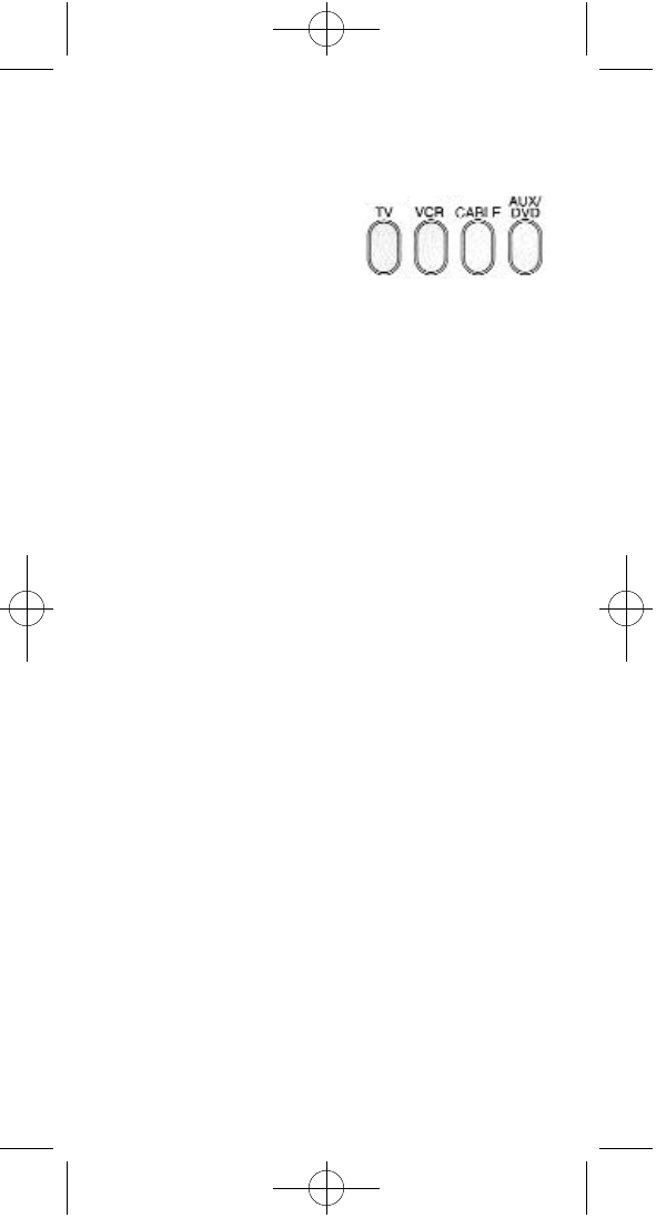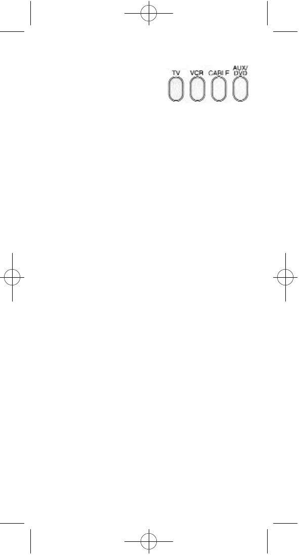 The TV,VCR, CABLE and DVD/AUX buttons are