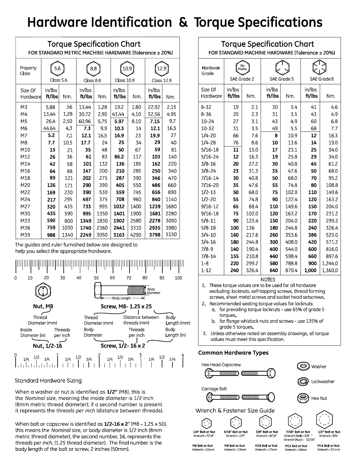 Torque Specification Chart ............................................................................................ Inside Back Cover