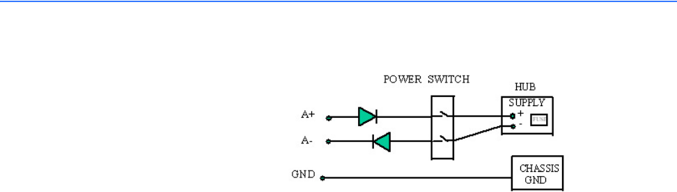 The Switch unit can receive power from either input, “A” or “B”. The hub will normally draw