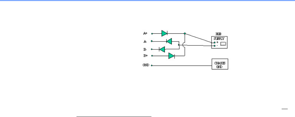 The Dual-Source DC power option is designed using diodes inside of the chassis on each
