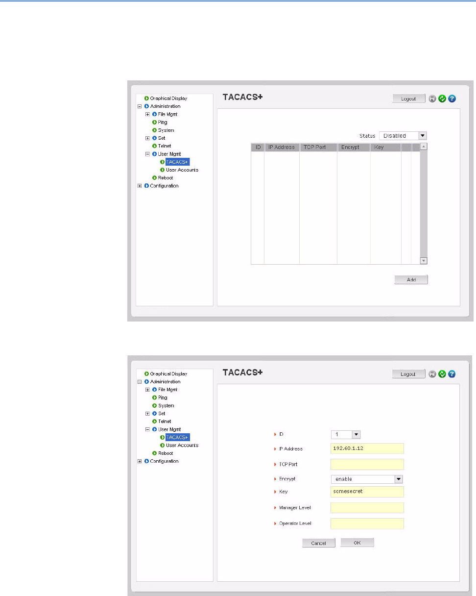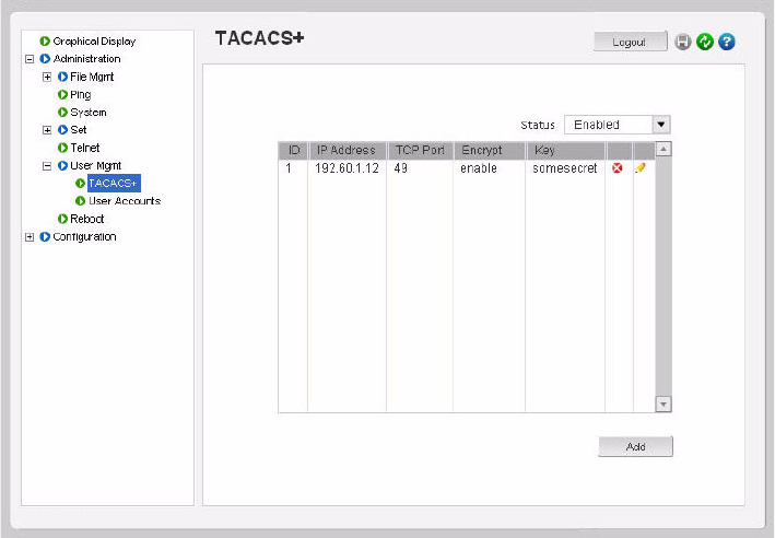 - Access using TACACS+