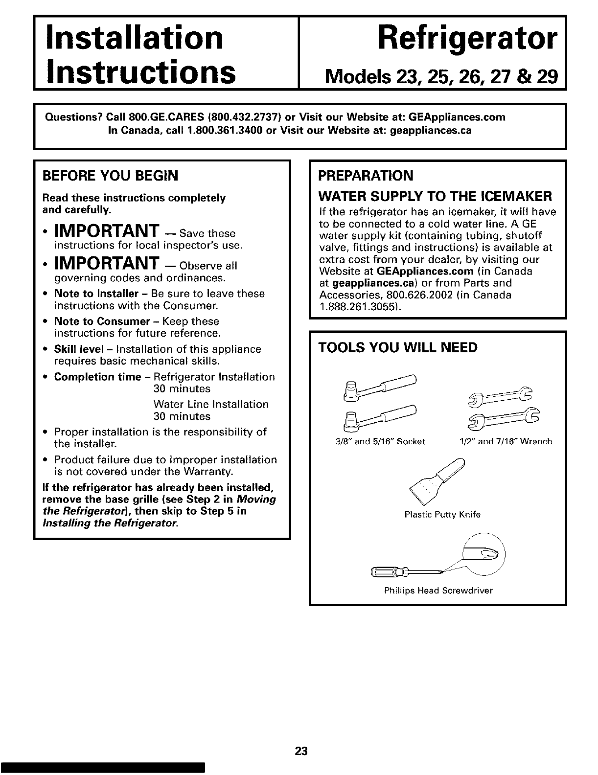 in effect. You can purchase it on-line anytime, or call 800.626.2224 during normal business hours. GE Consumer