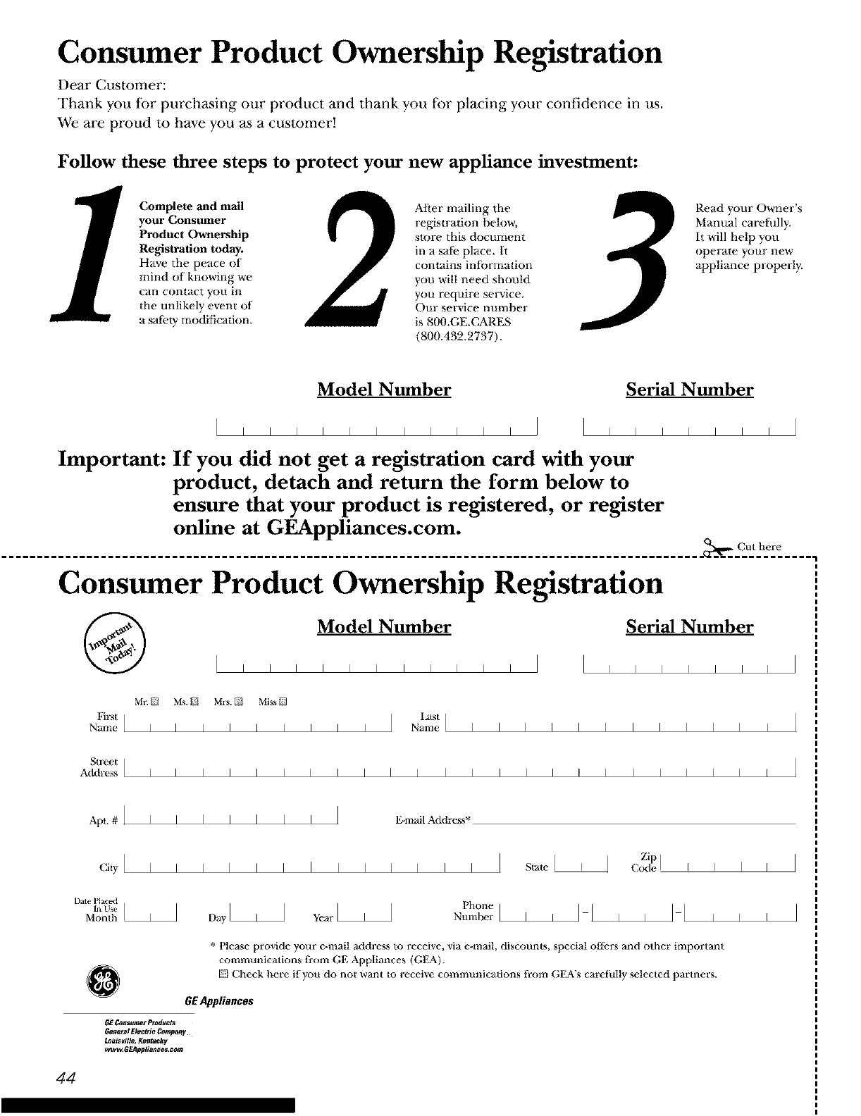 mail in the pre-printed regisn-ation card included in the packing material. In Canada: geappliances.ca