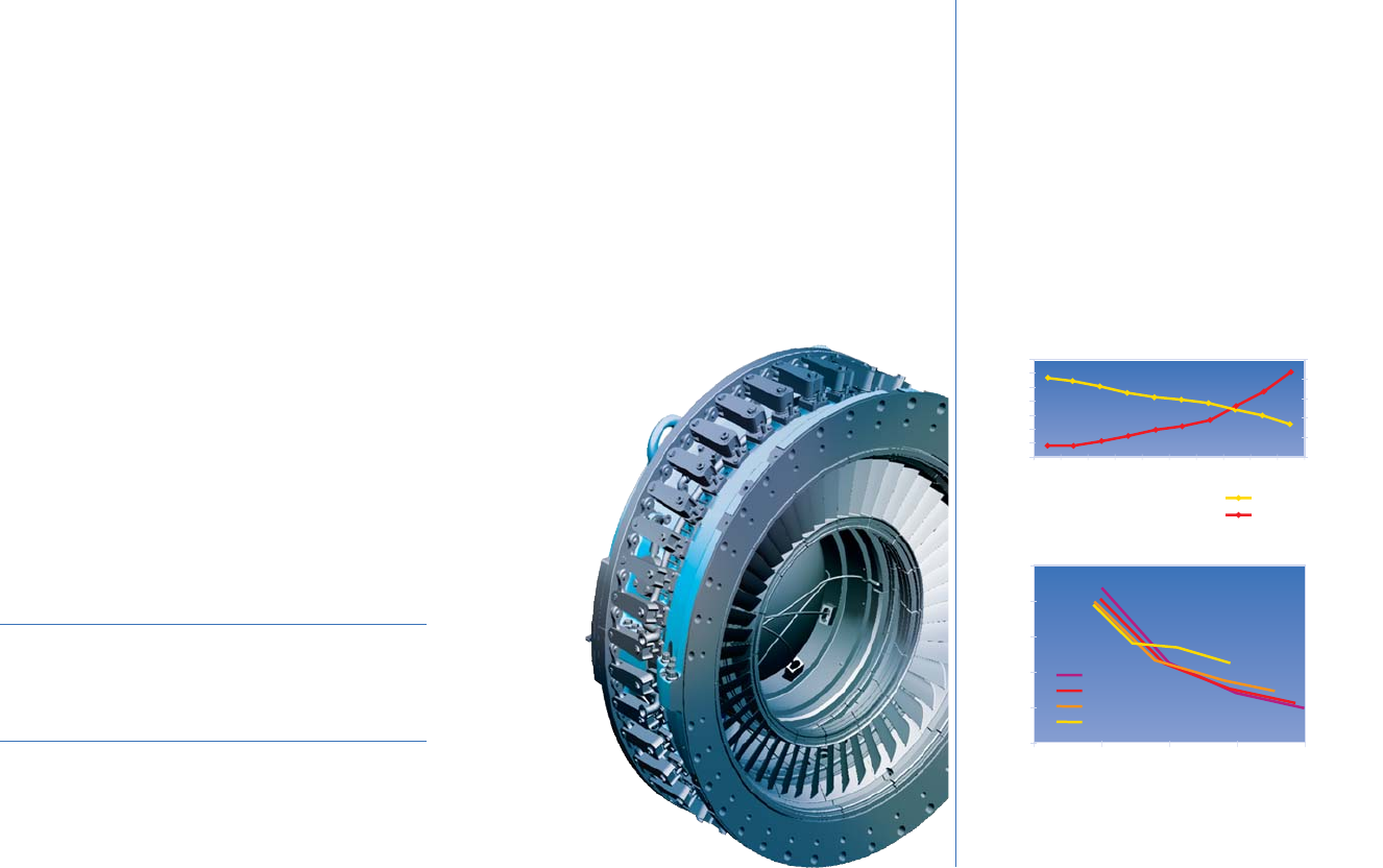 The antisurge margin exceeds 25%. Advanced 3D airfoils are used for vanes and blades, and the