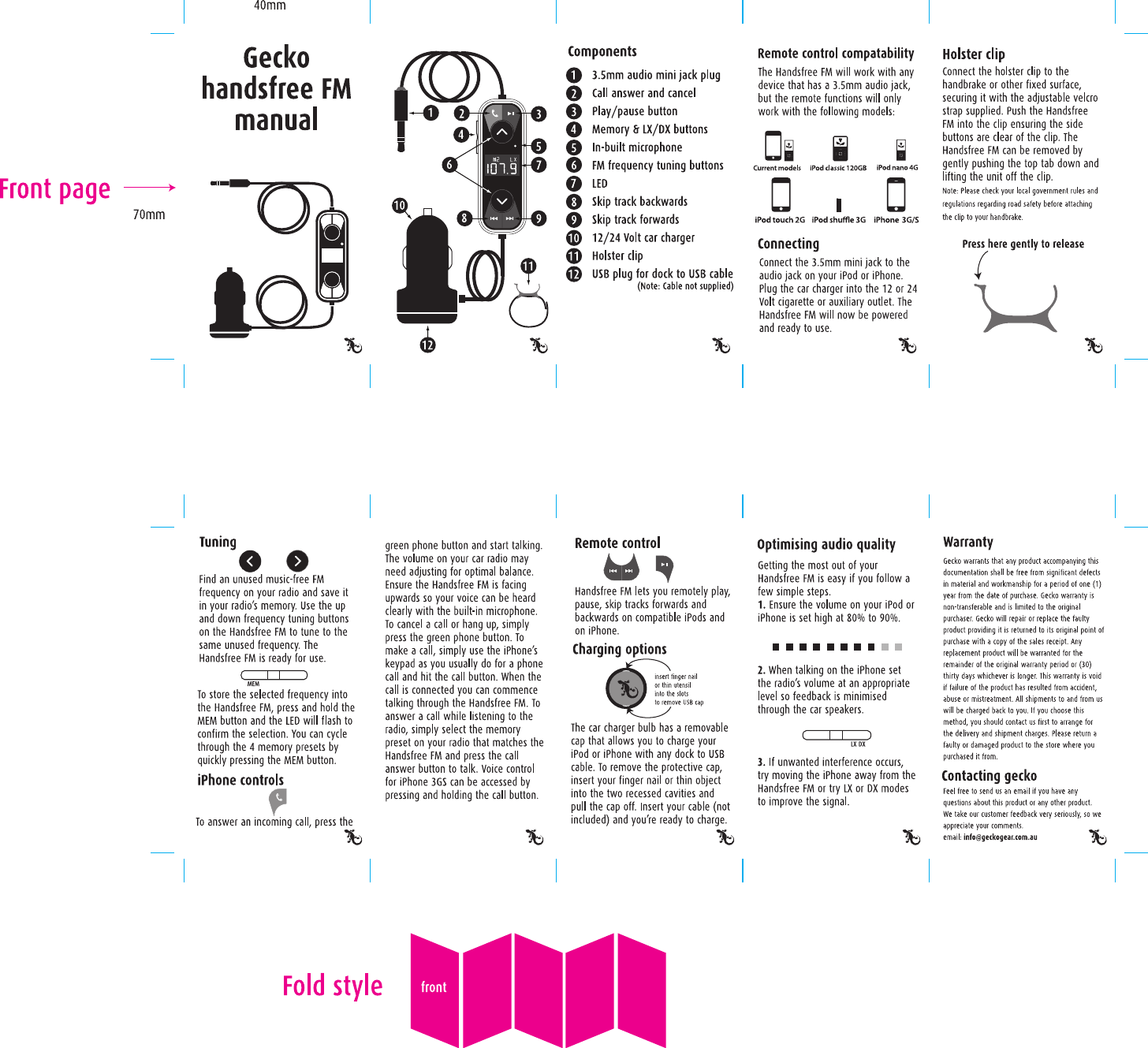 Gecko Gear Australia Pty Ltd Wireless FM Transmitter handsfree FM manual V3 out