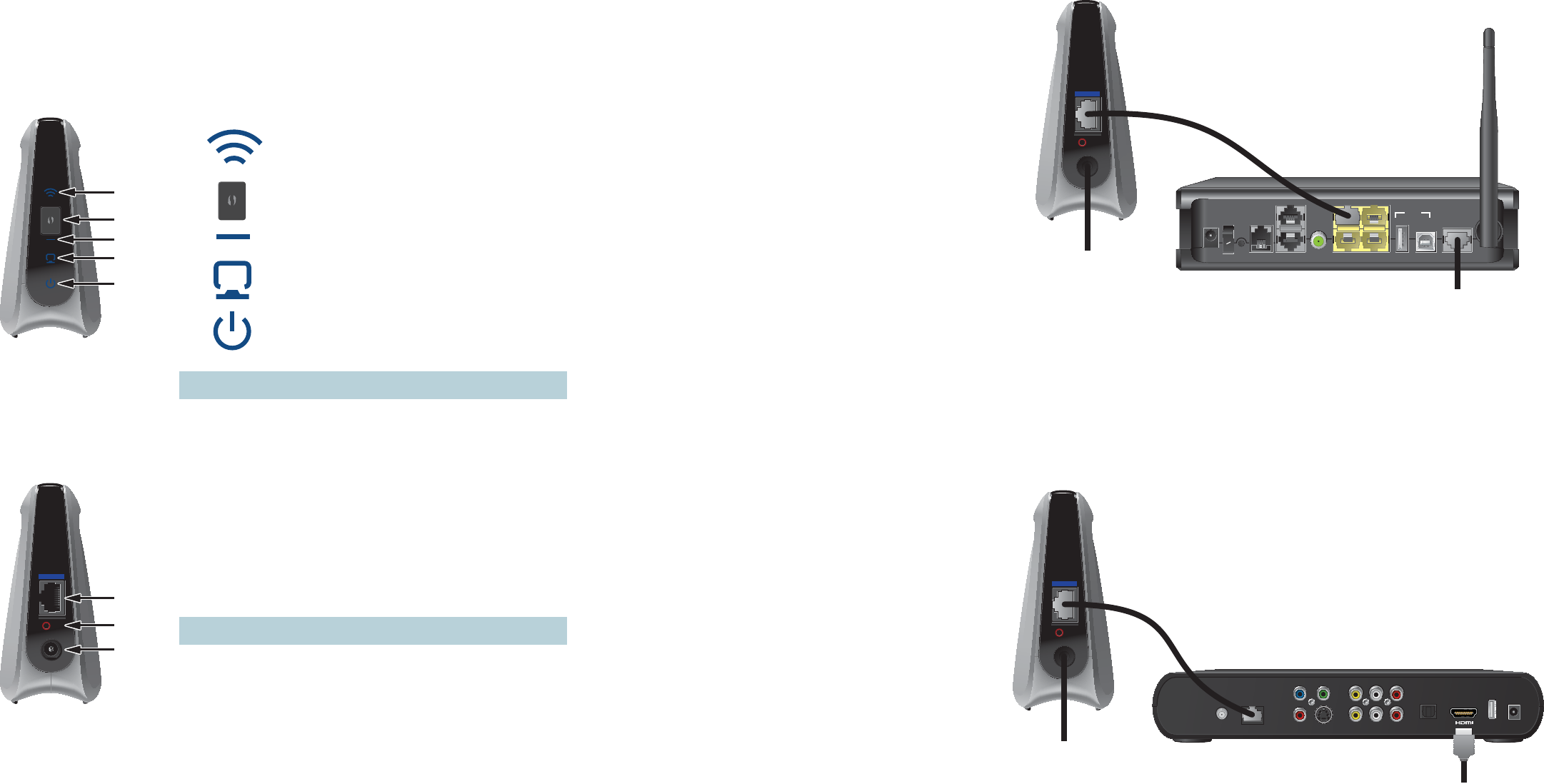 or wall jacks to pass high-de nition video streams from the Internet to your set-top or other media devices. Follow these simple