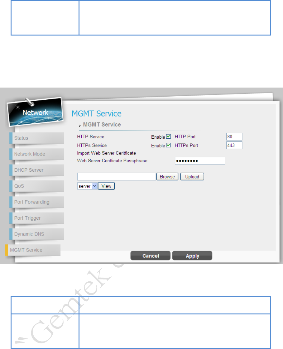 CPE has a web GUI which supports http/https protocol; it could be used to configure the