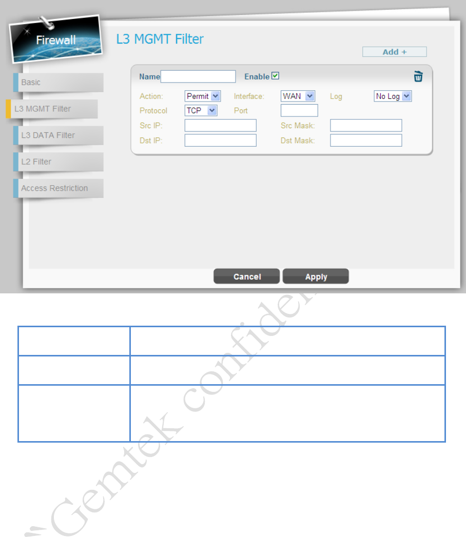 Firewall | L3 MGMT Filter ........................................................................................ 38