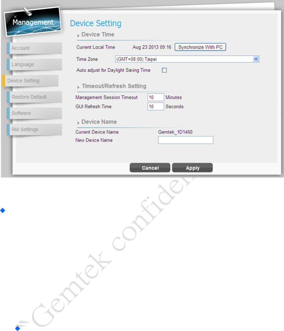 Current Local Time: Display current local time; or click “Synchronize with PC”