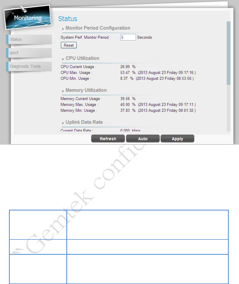 GUI Refresh Time: Enter the value in second for refreshing GUI in Status