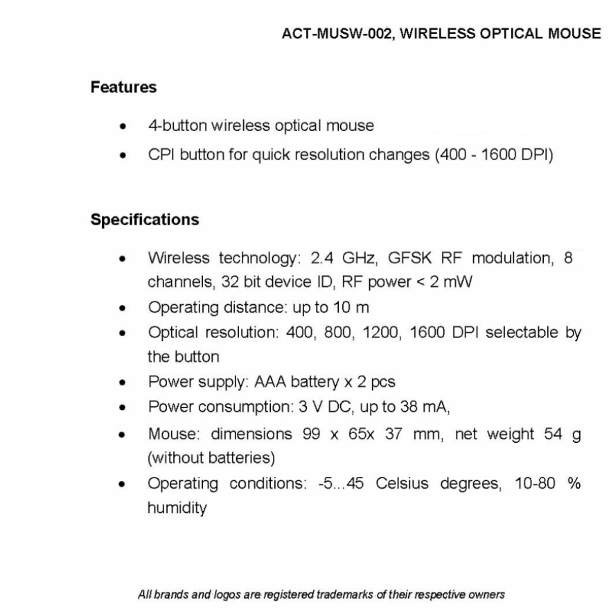 Gembird Electronics MUSW002 Wireless Mouse User Manual